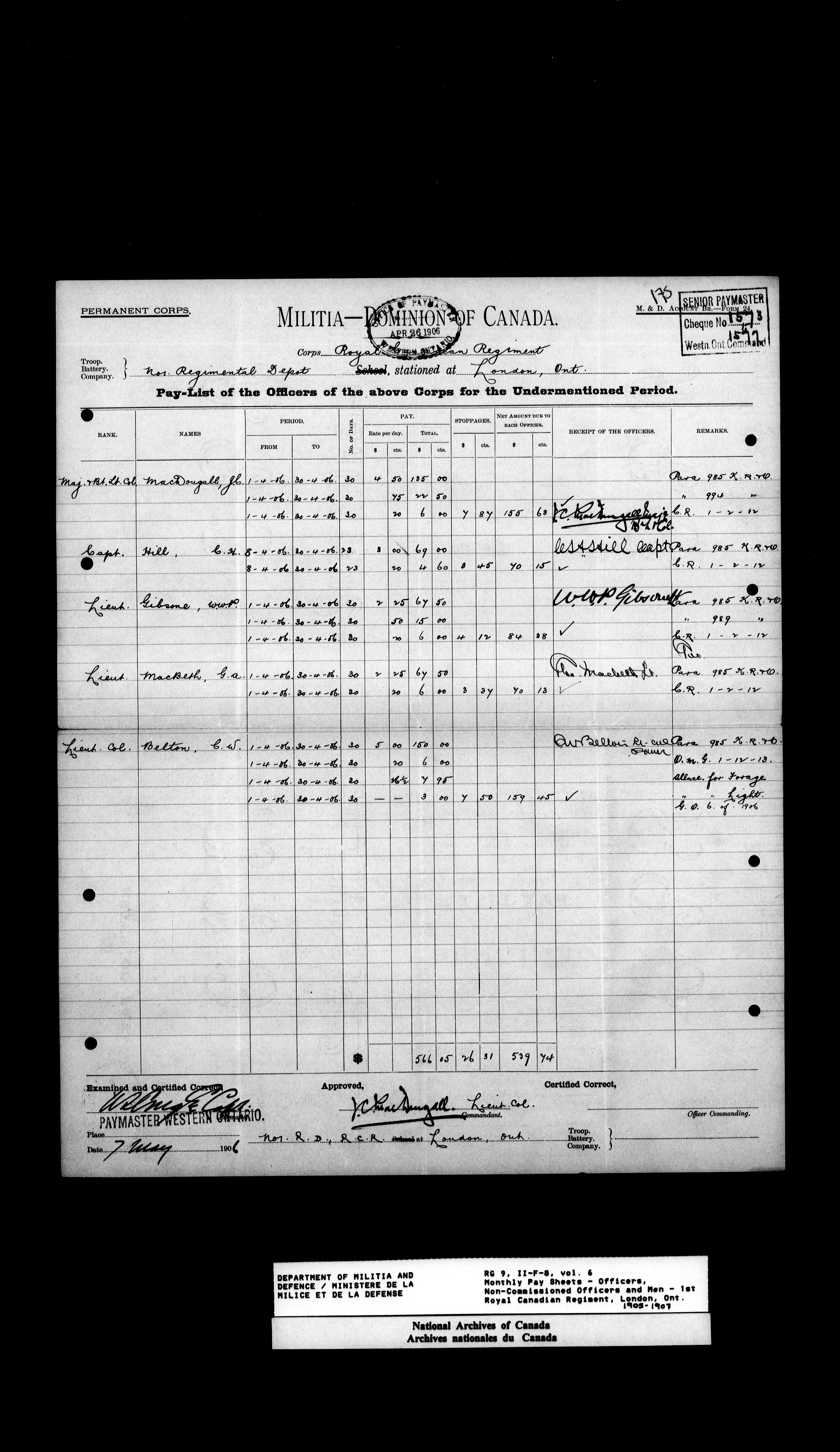 Nominal rolls and paylists for the Permanent Force (1871-1915) - 17433