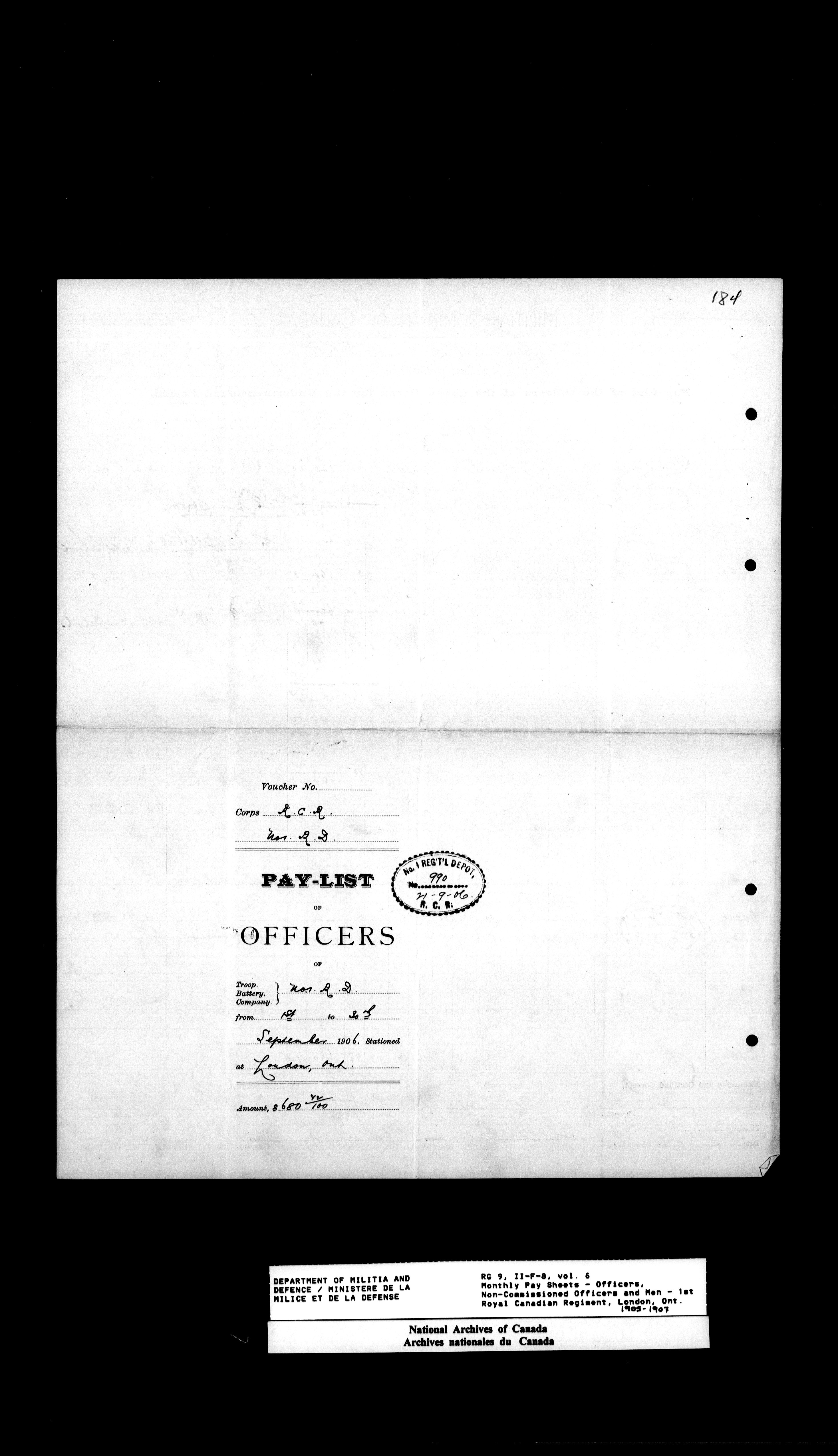 Nominal rolls and paylists for the Permanent Force (1871-1915) - 17433