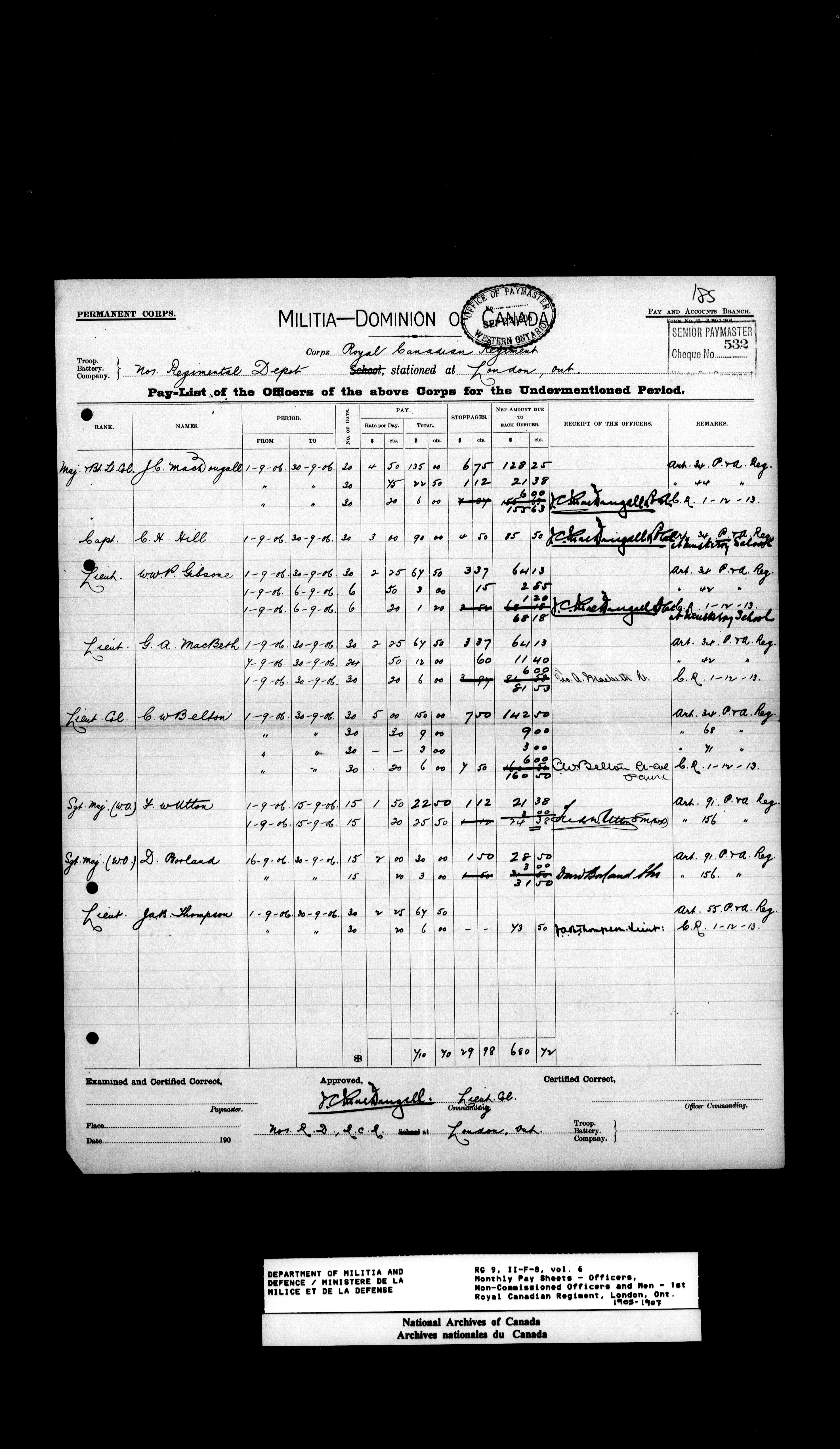Nominal rolls and paylists for the Permanent Force (1871-1915) - 17433