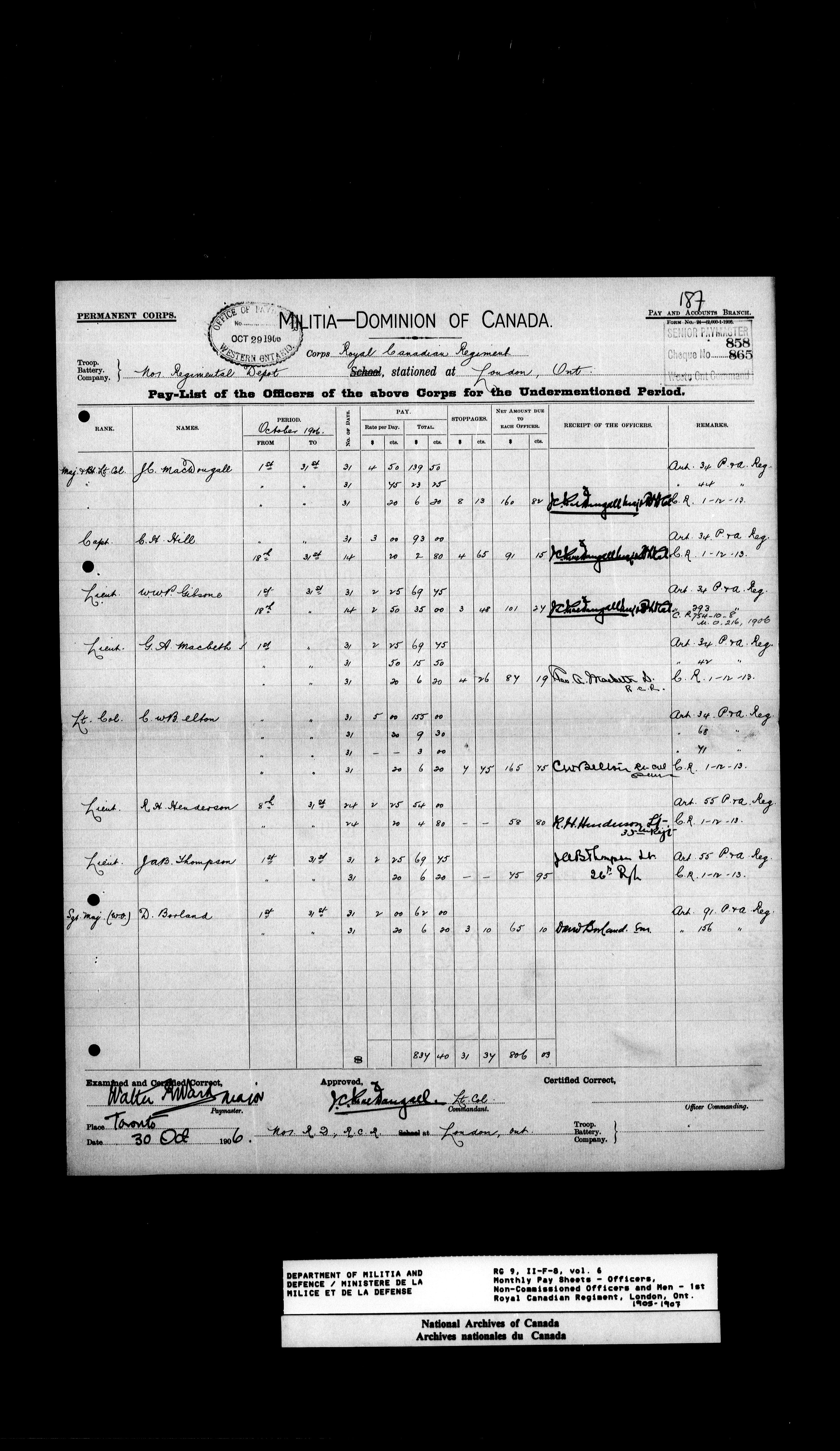 Nominal rolls and paylists for the Permanent Force (1871-1915) - 17433