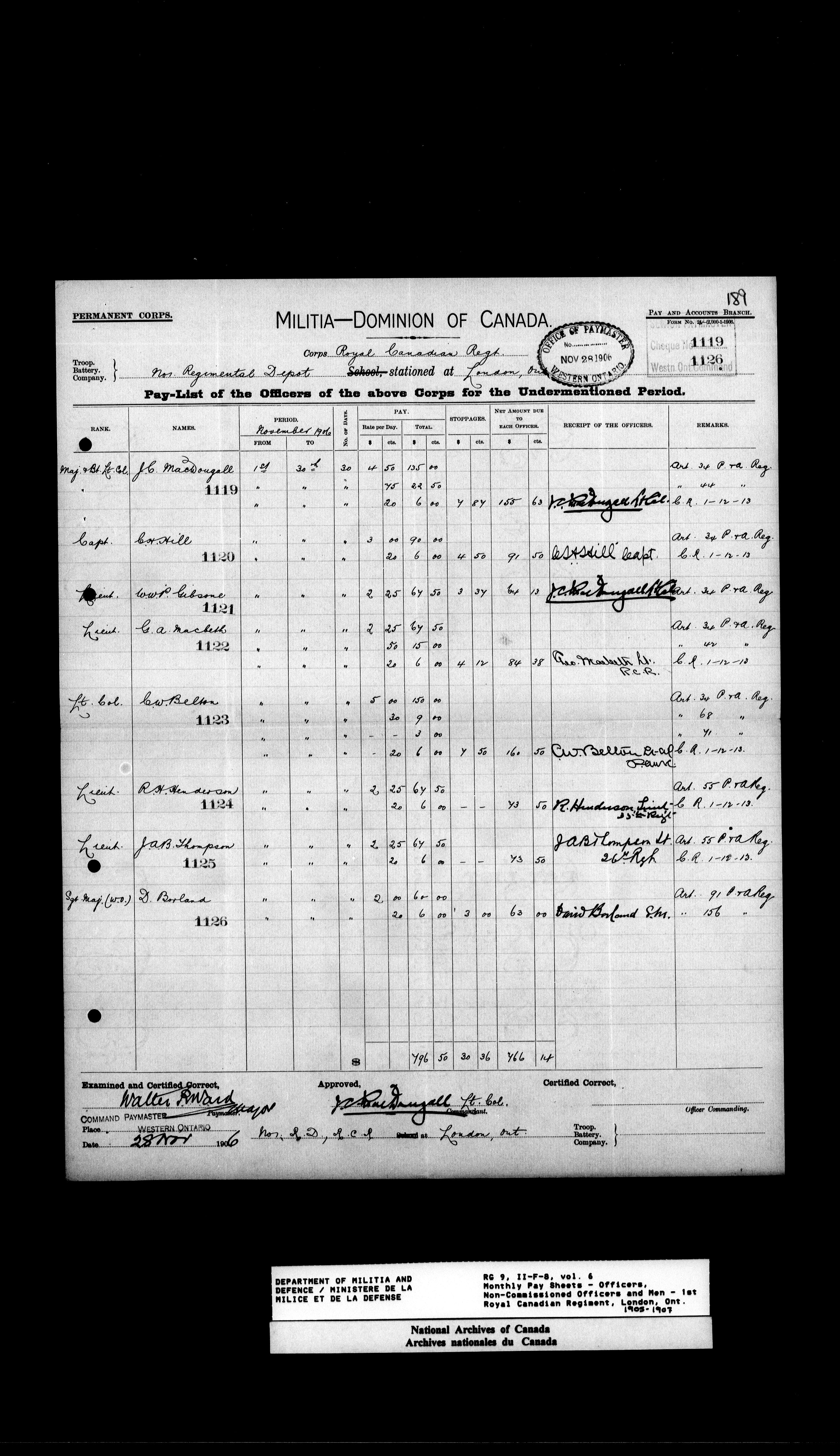Nominal rolls and paylists for the Permanent Force (1871-1915) - 17433