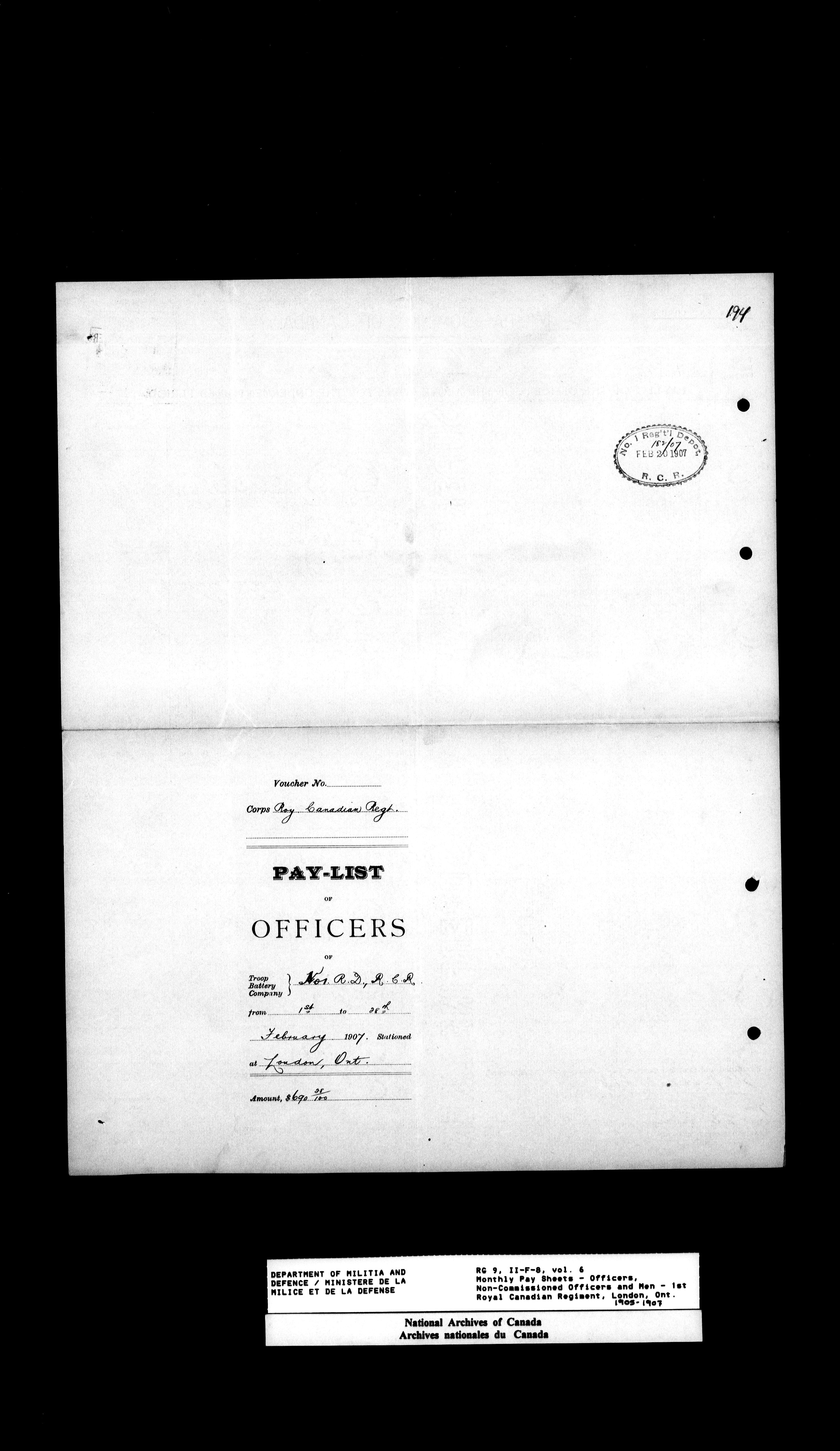 Nominal rolls and paylists for the Permanent Force (1871-1915) - 17433