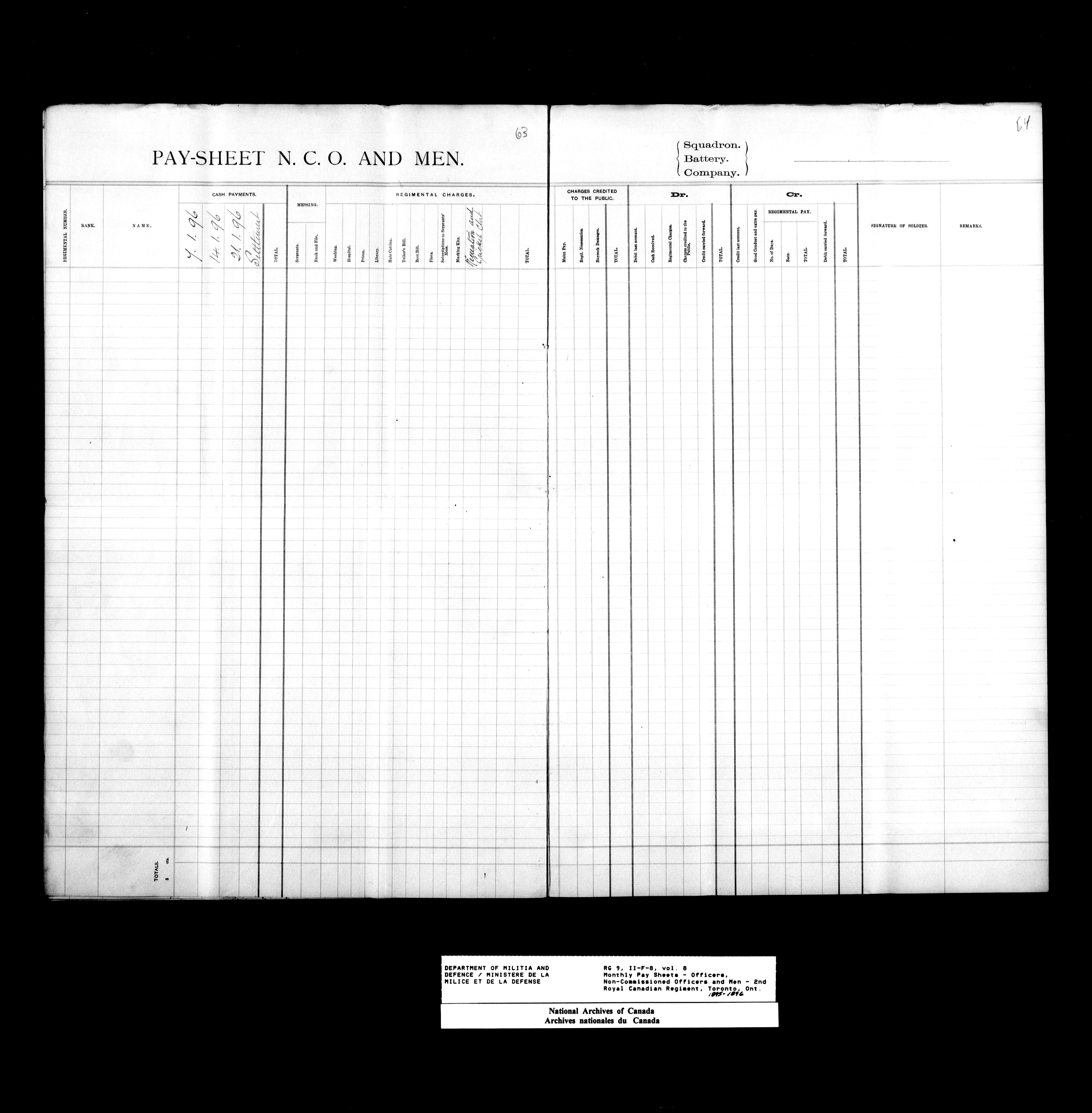 Nominal rolls and paylists for the Permanent Force (1871-1915) - 17433