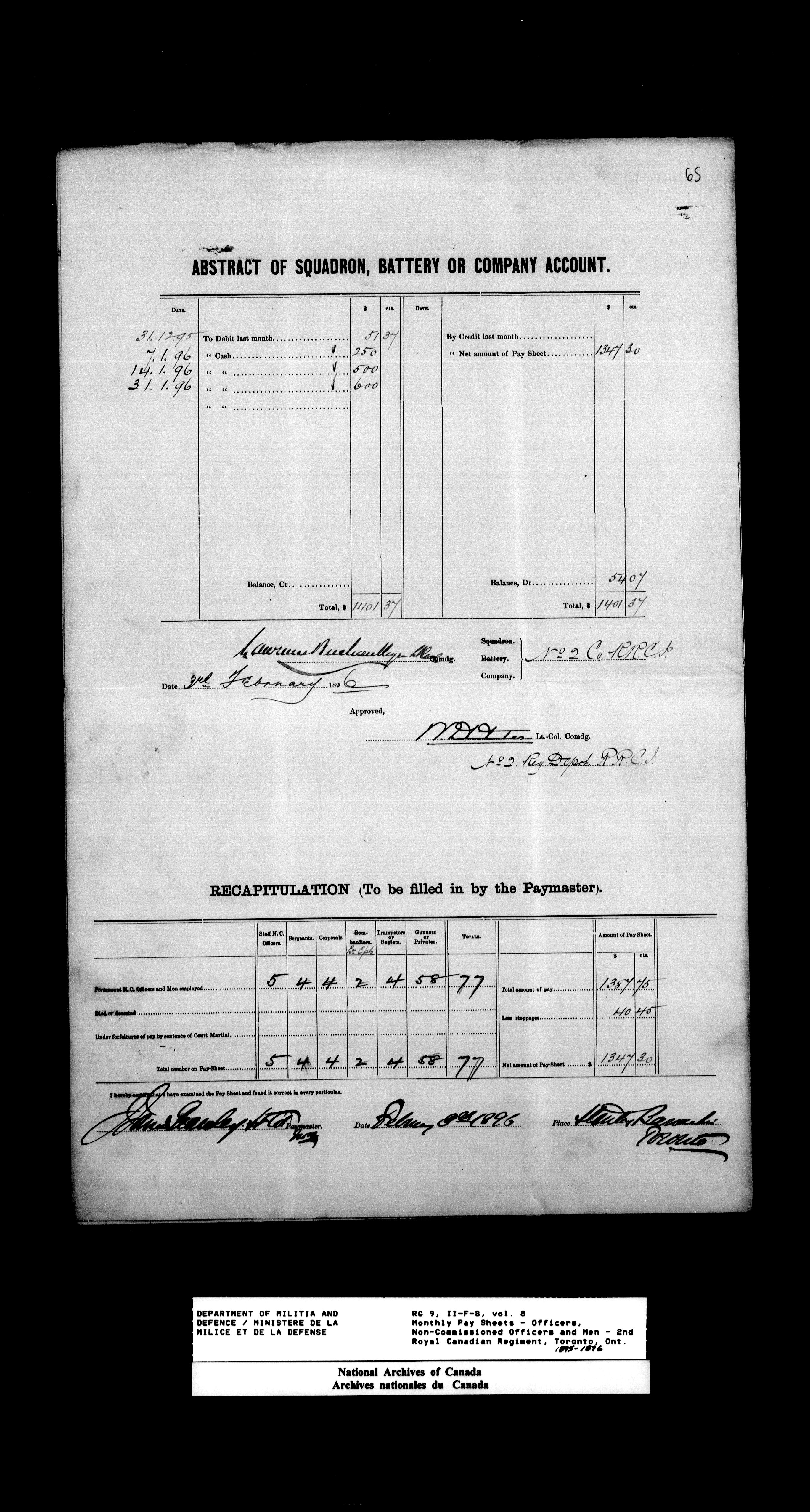 Nominal rolls and paylists for the Permanent Force (1871-1915) - 17433