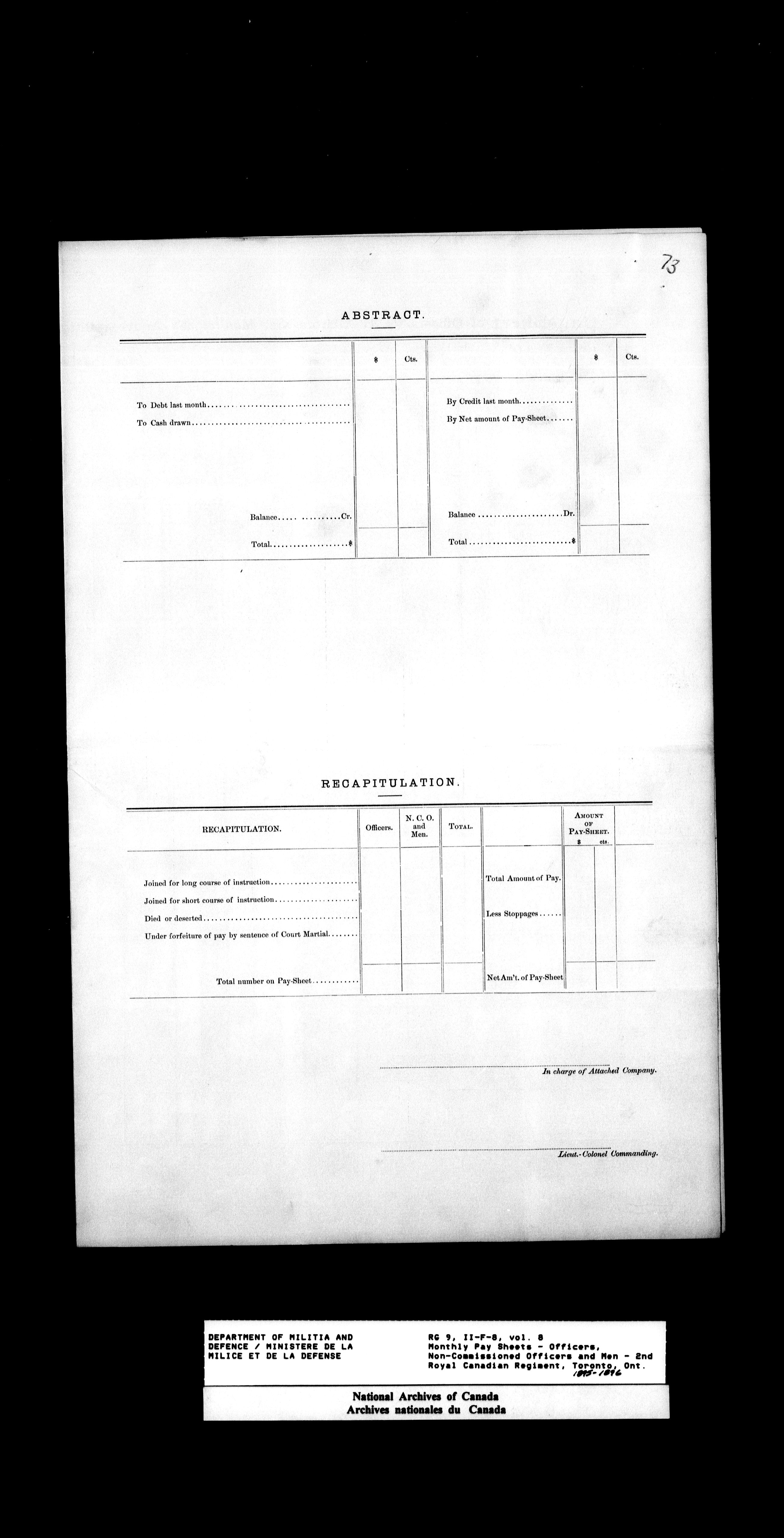 Nominal rolls and paylists for the Permanent Force (1871-1915) - 17433