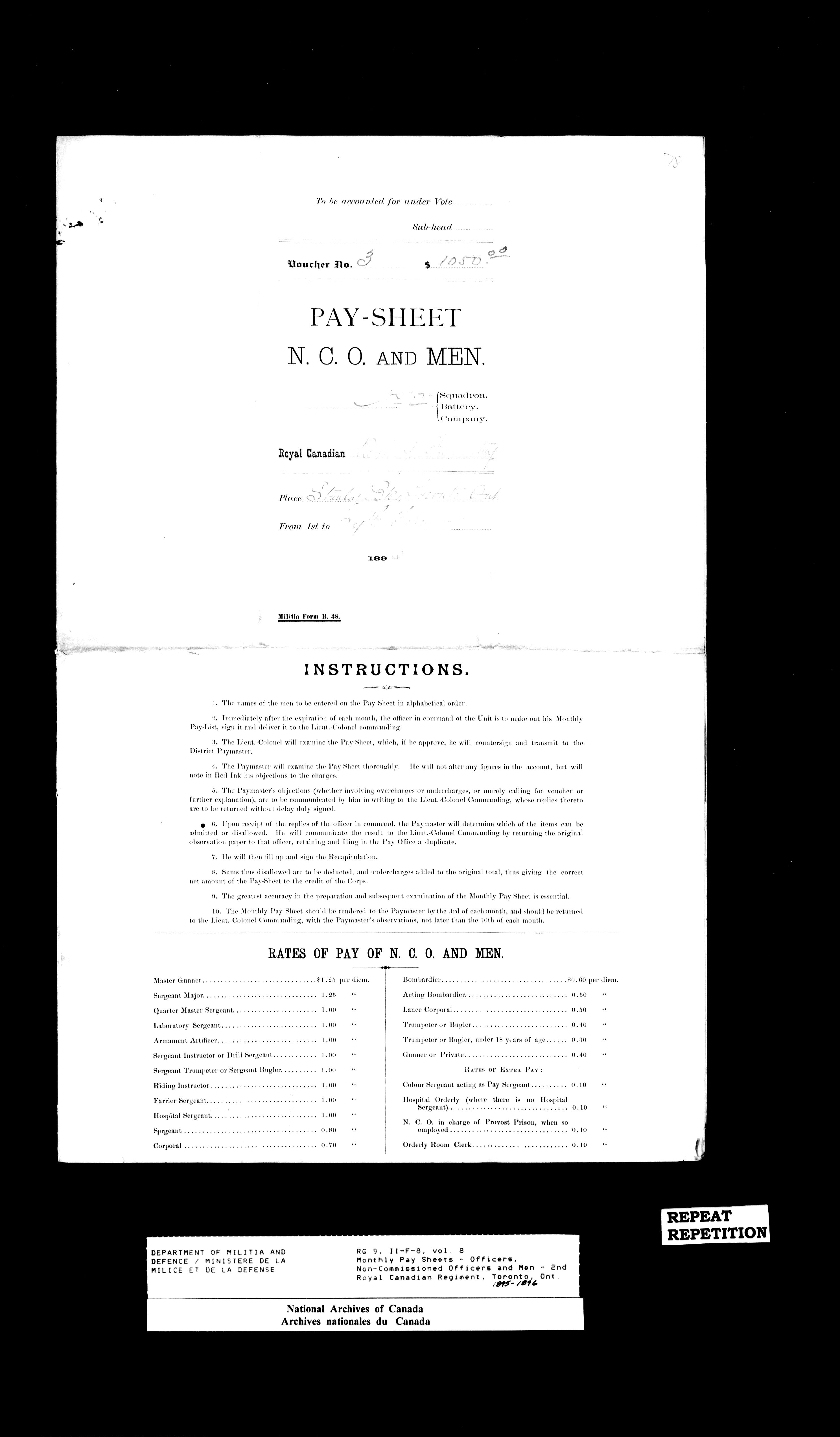 Nominal rolls and paylists for the Permanent Force (1871-1915) - 17433