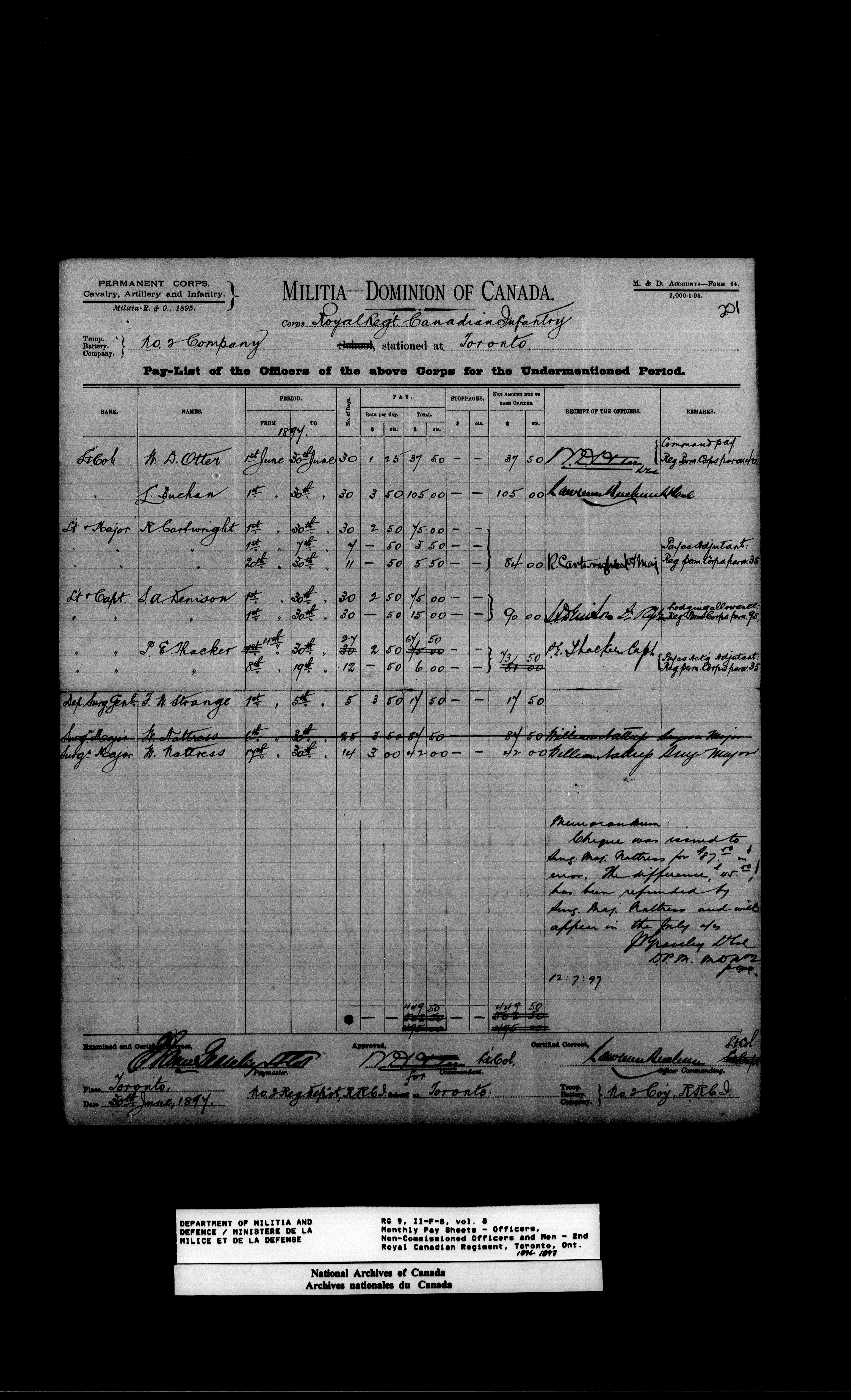 Nominal rolls and paylists for the Permanent Force (1871-1915) - 17434