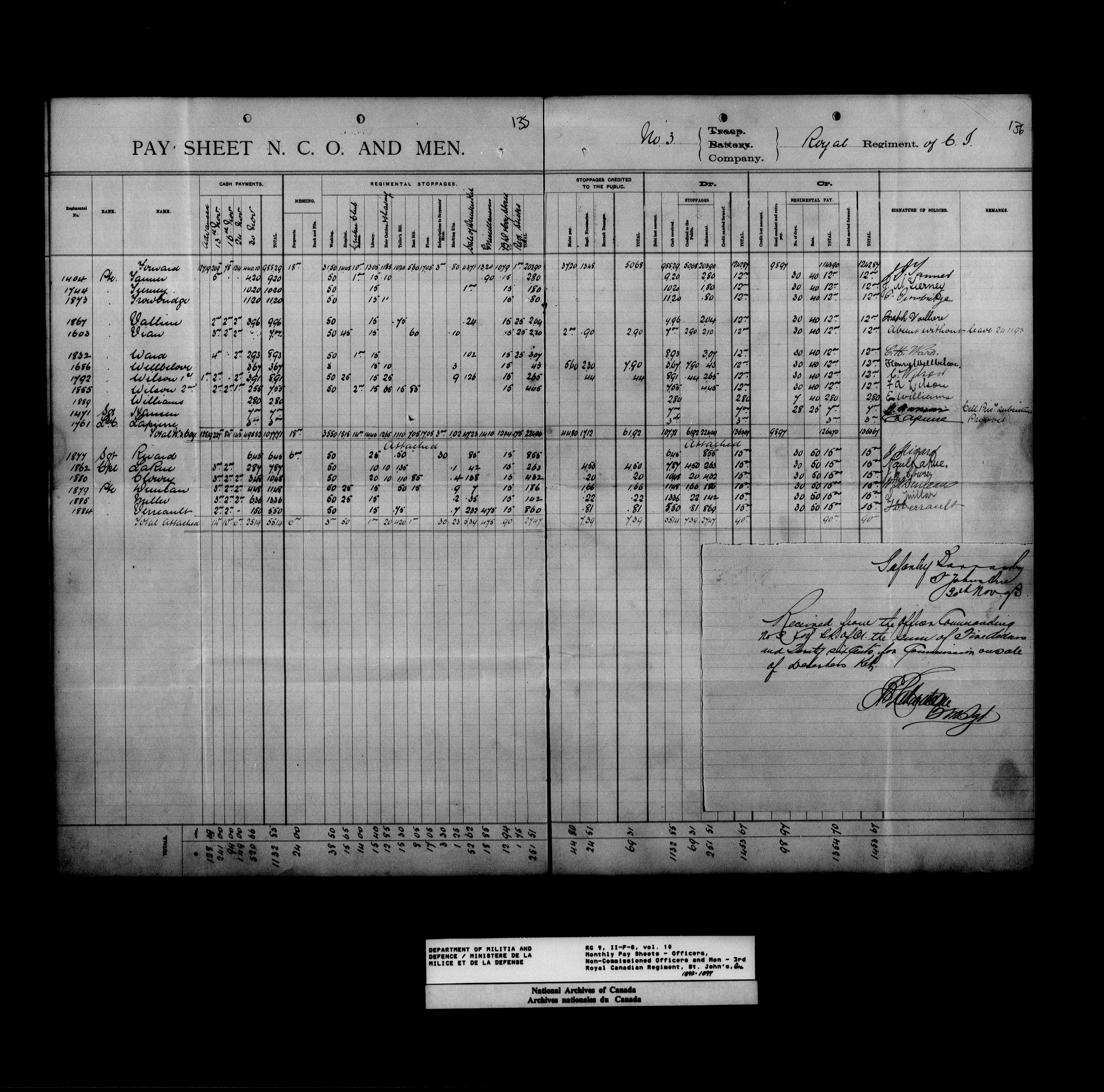 Nominal rolls and paylists for the Permanent Force (1871-1915) - 17434