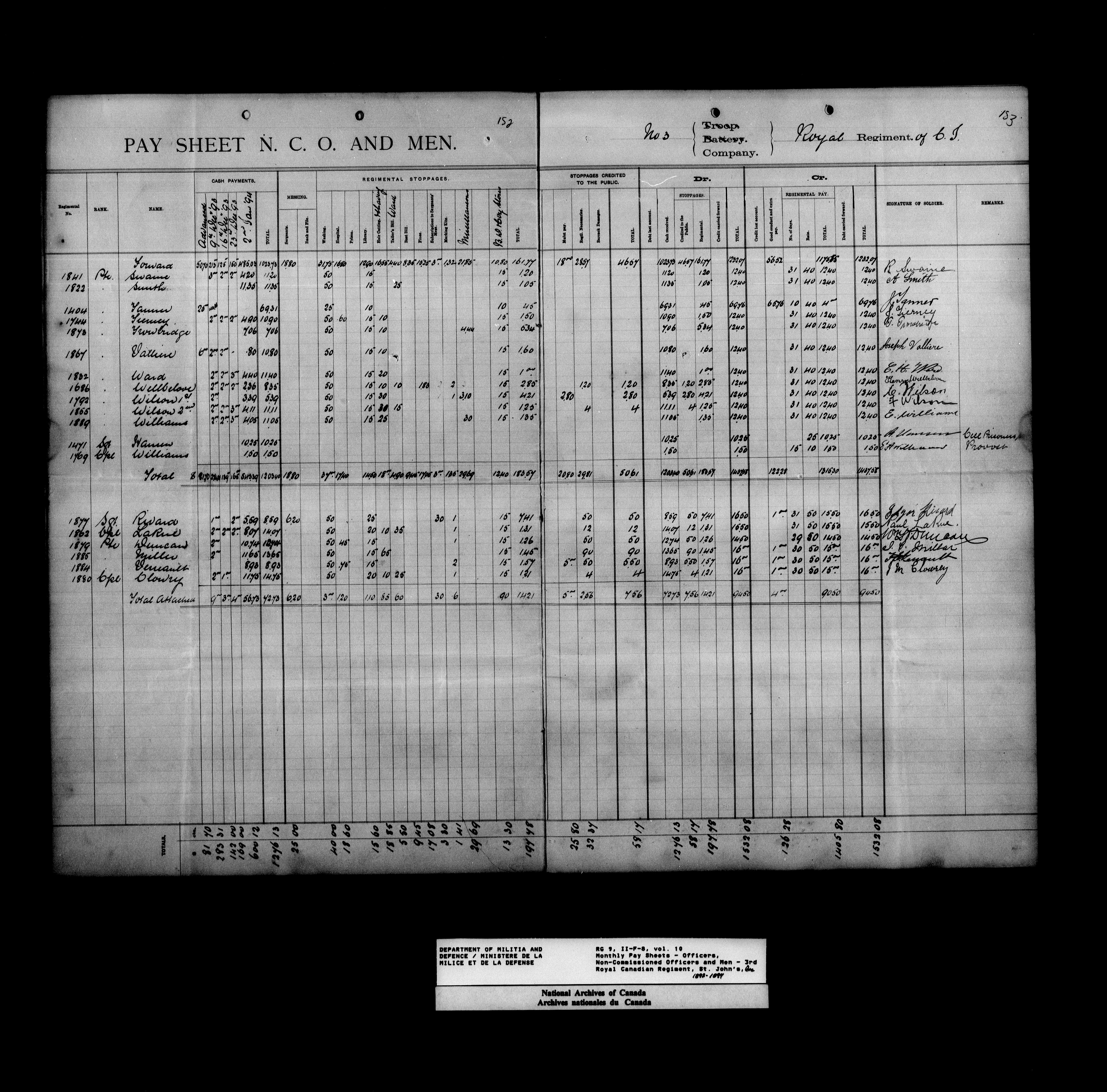 Nominal rolls and paylists for the Permanent Force (1871-1915) - 17434