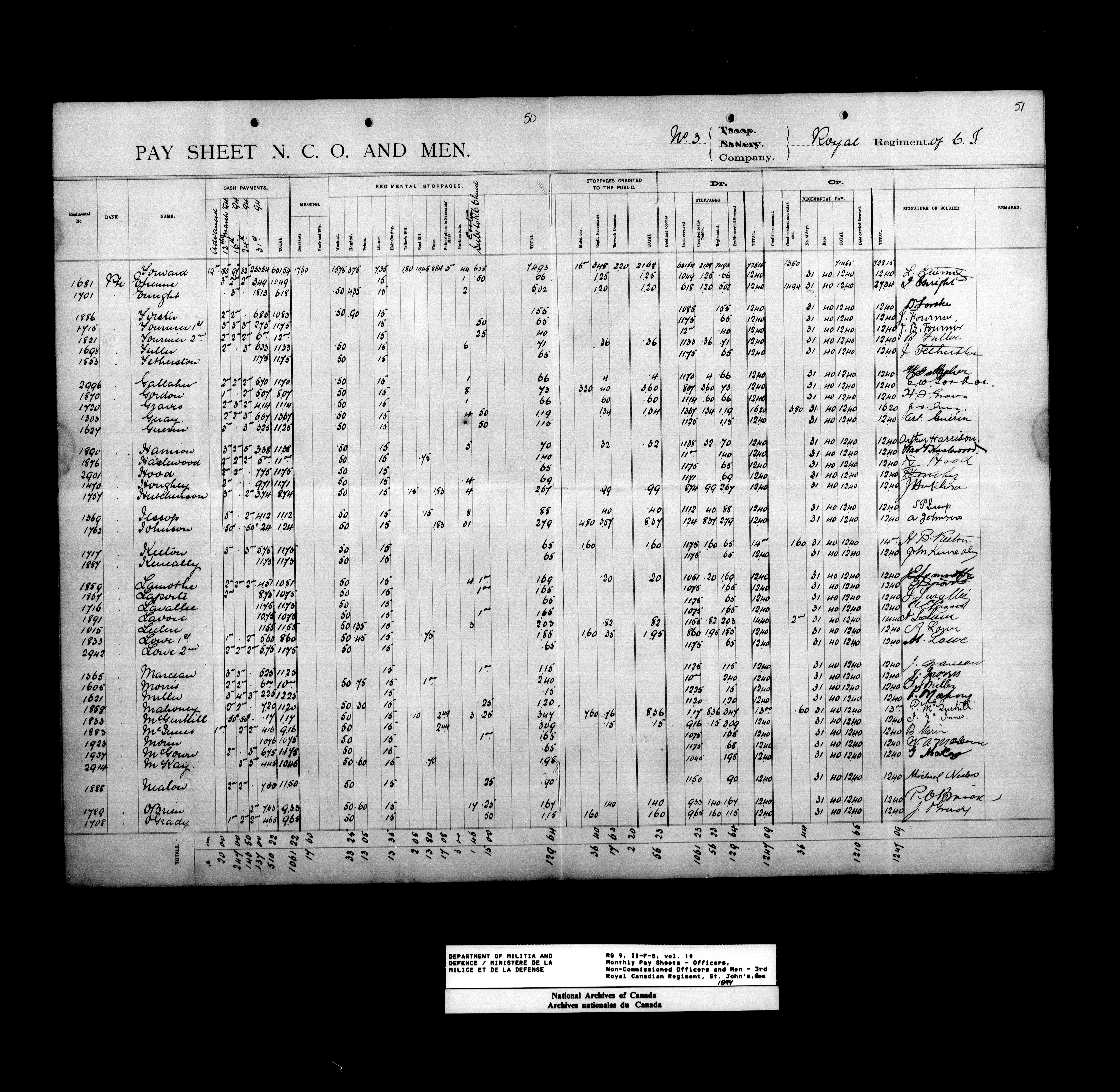 Department of Militia and Defence; nominal rolls and paylists for the Permanent Force : T-17435