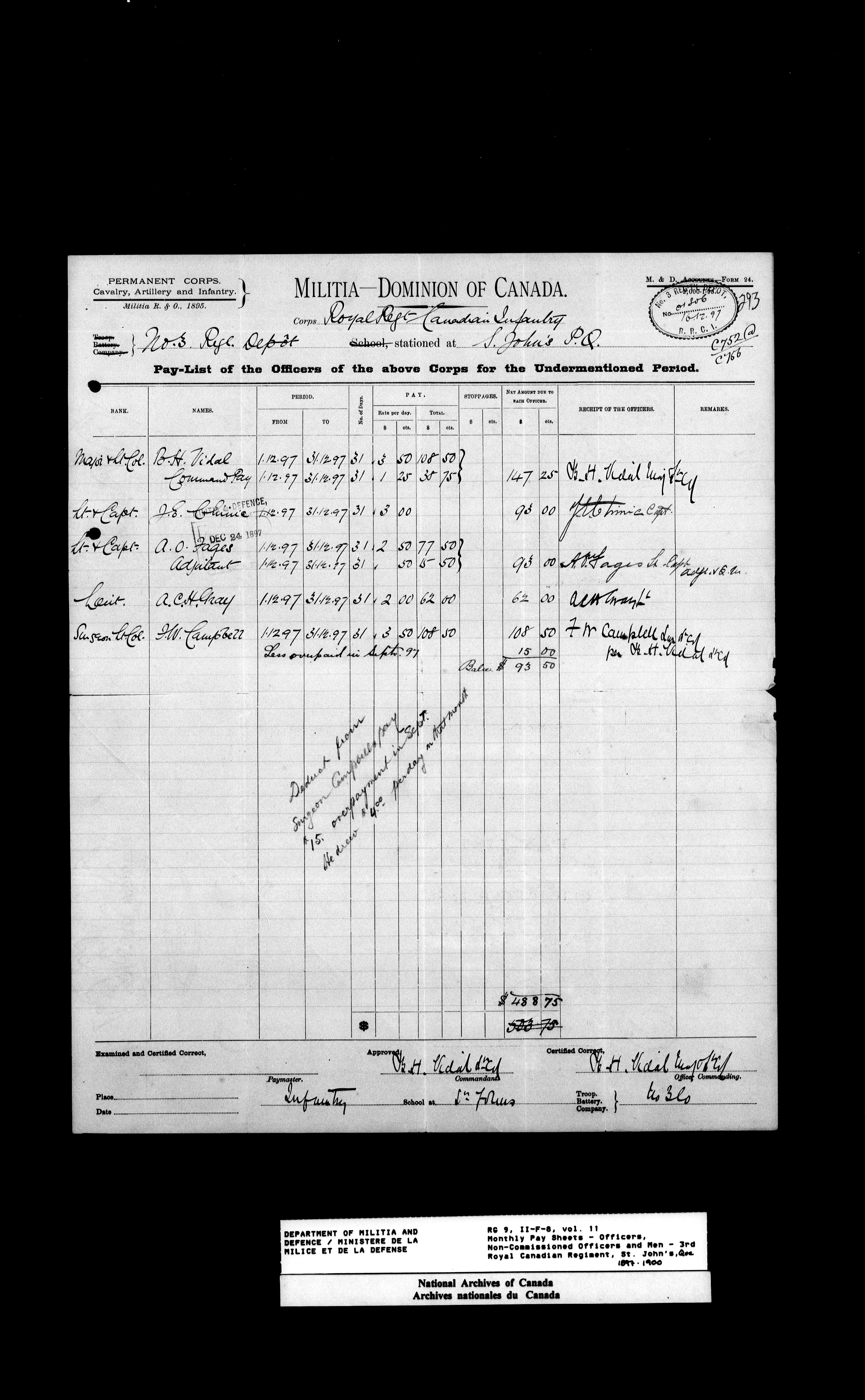 Nominal rolls and paylists for the Permanent Force (1871-1915) - 17435