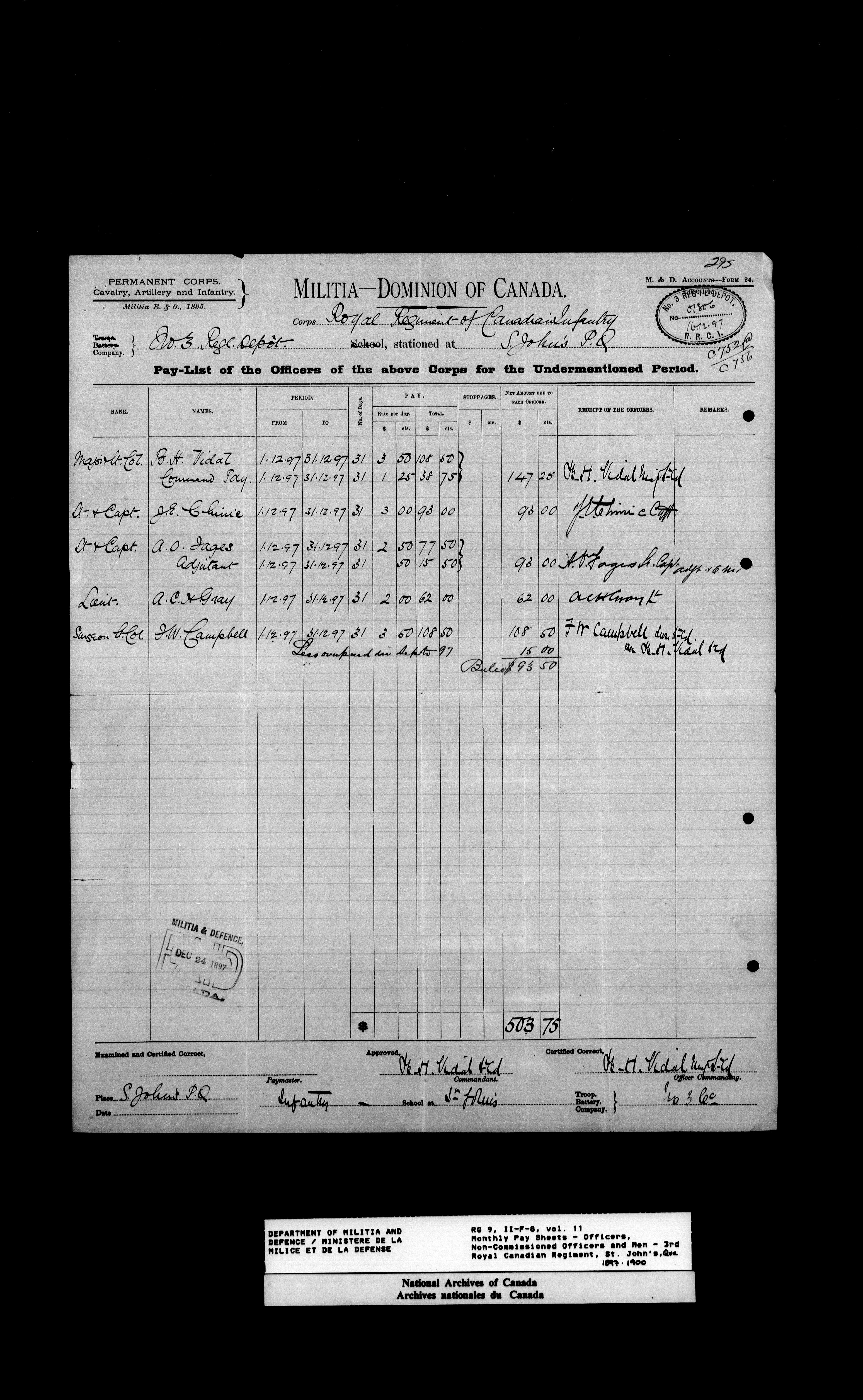 Nominal rolls and paylists for the Permanent Force (1871-1915) - 17435