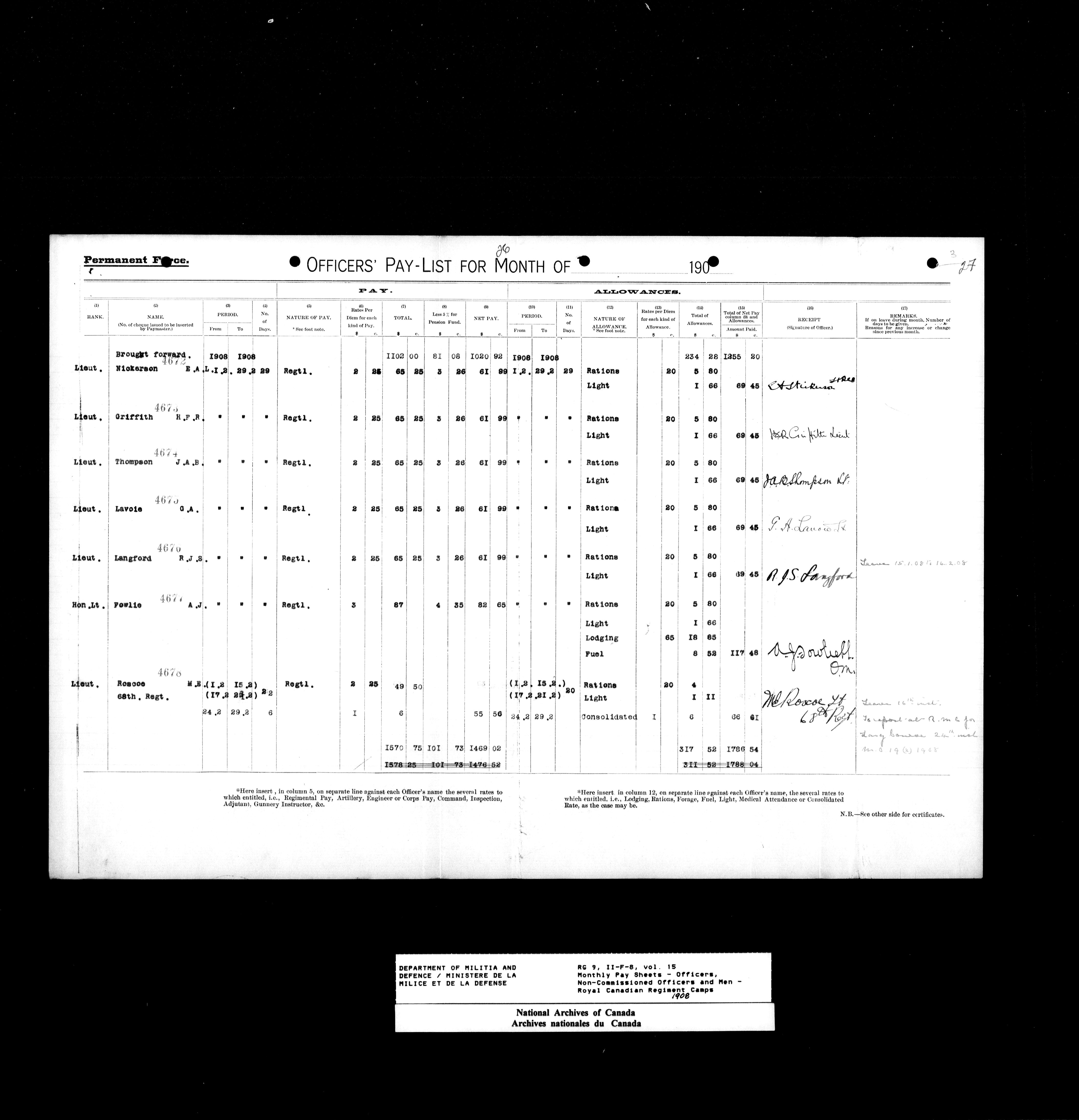 Nominal rolls and paylists for the Permanent Force (1871-1915) - 17437
