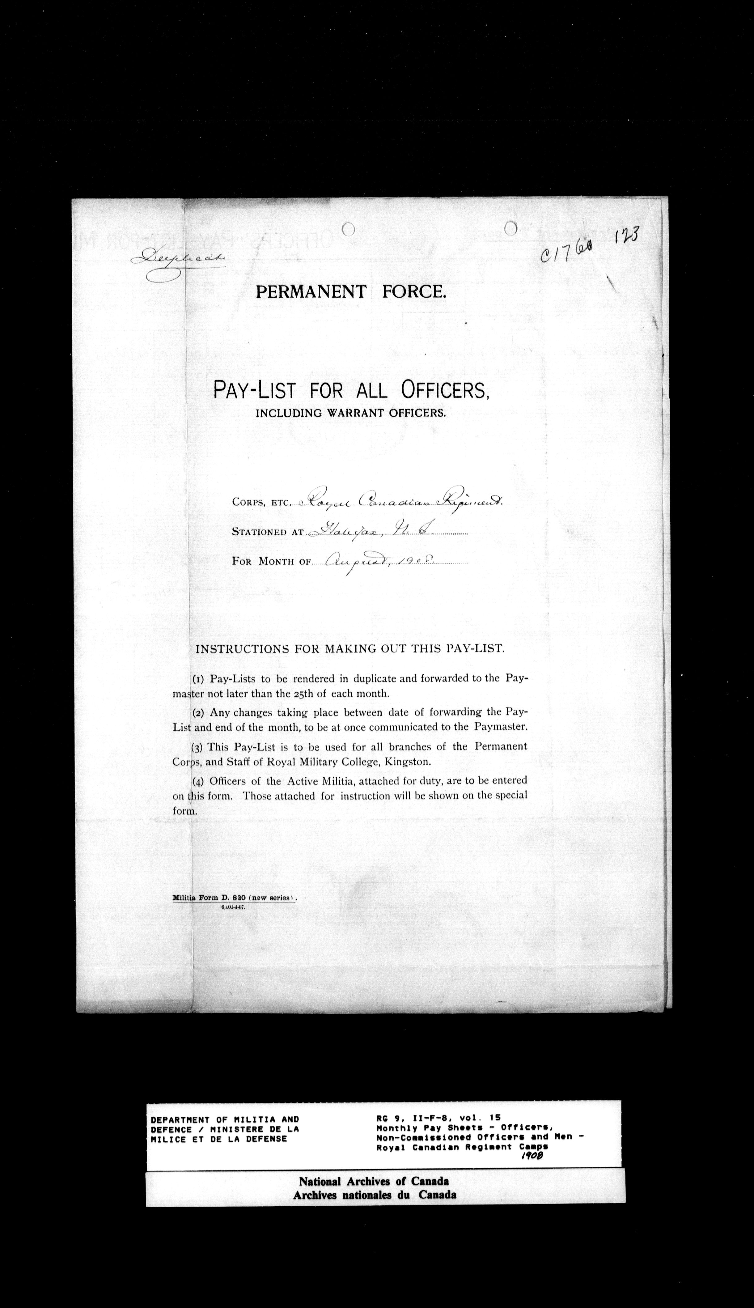 Nominal rolls and paylists for the Permanent Force (1871-1915) - 17438
