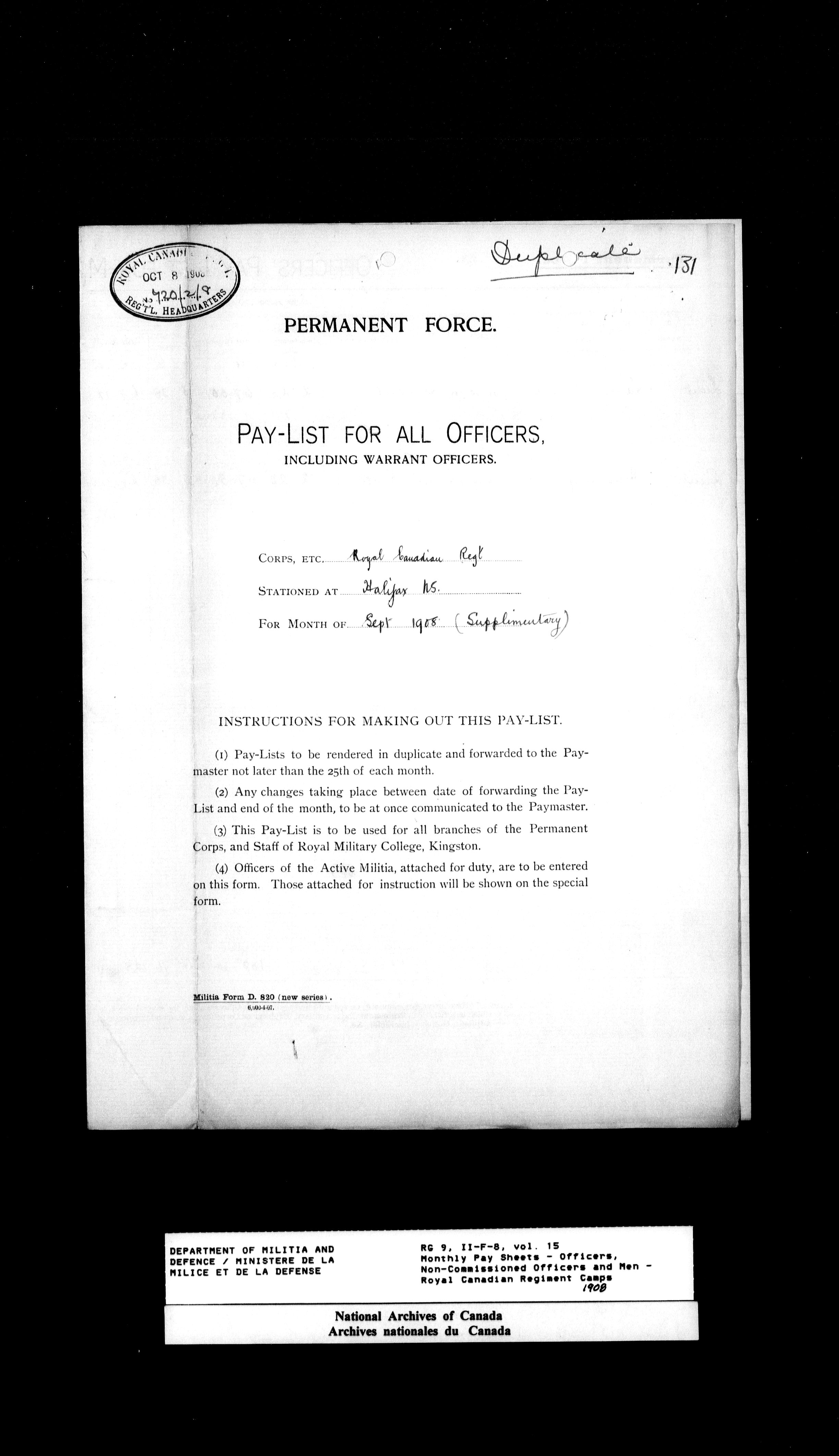 Nominal rolls and paylists for the Permanent Force (1871-1915) - 17438