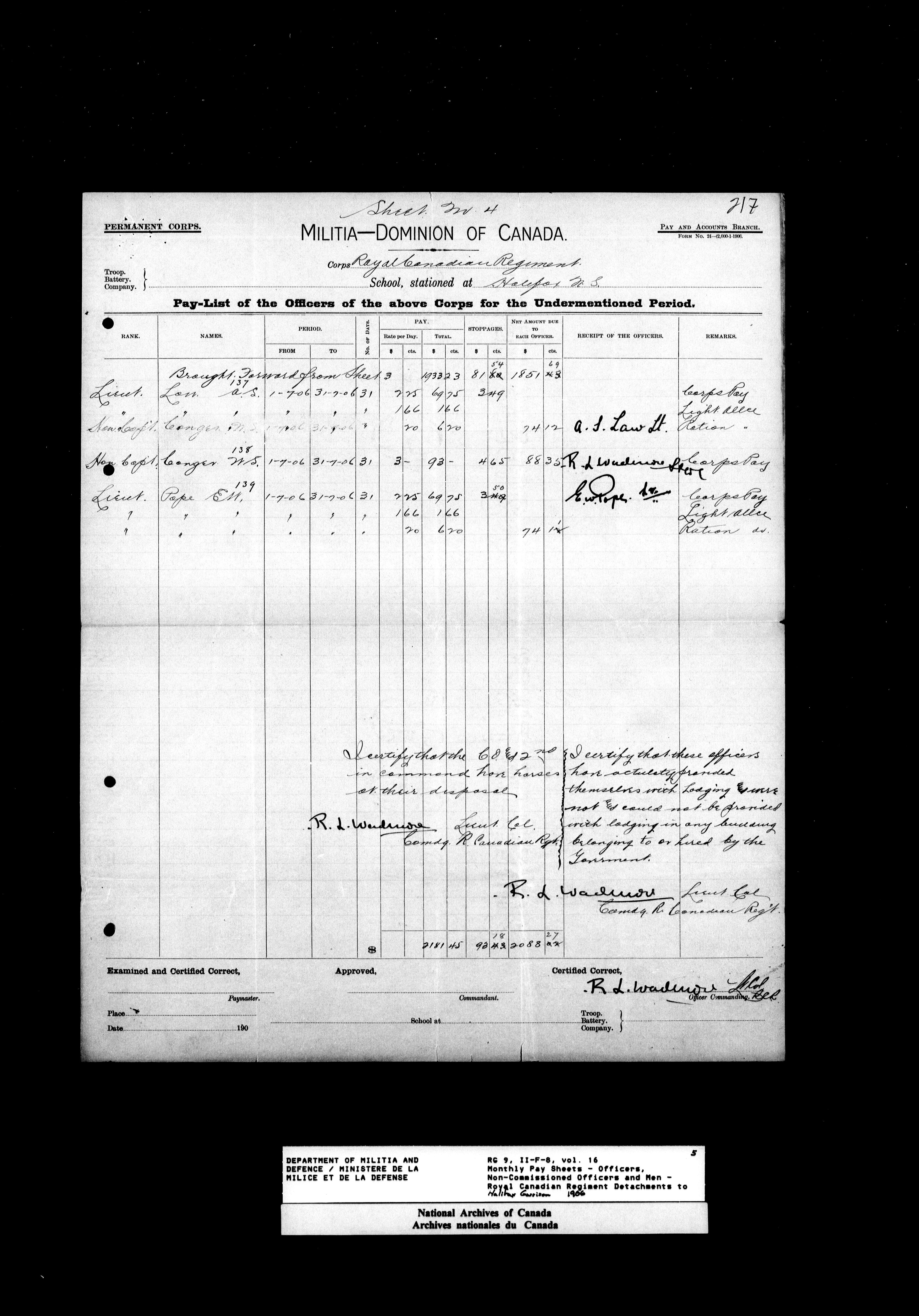 Nominal rolls and paylists for the Permanent Force (1871-1915) - 17439