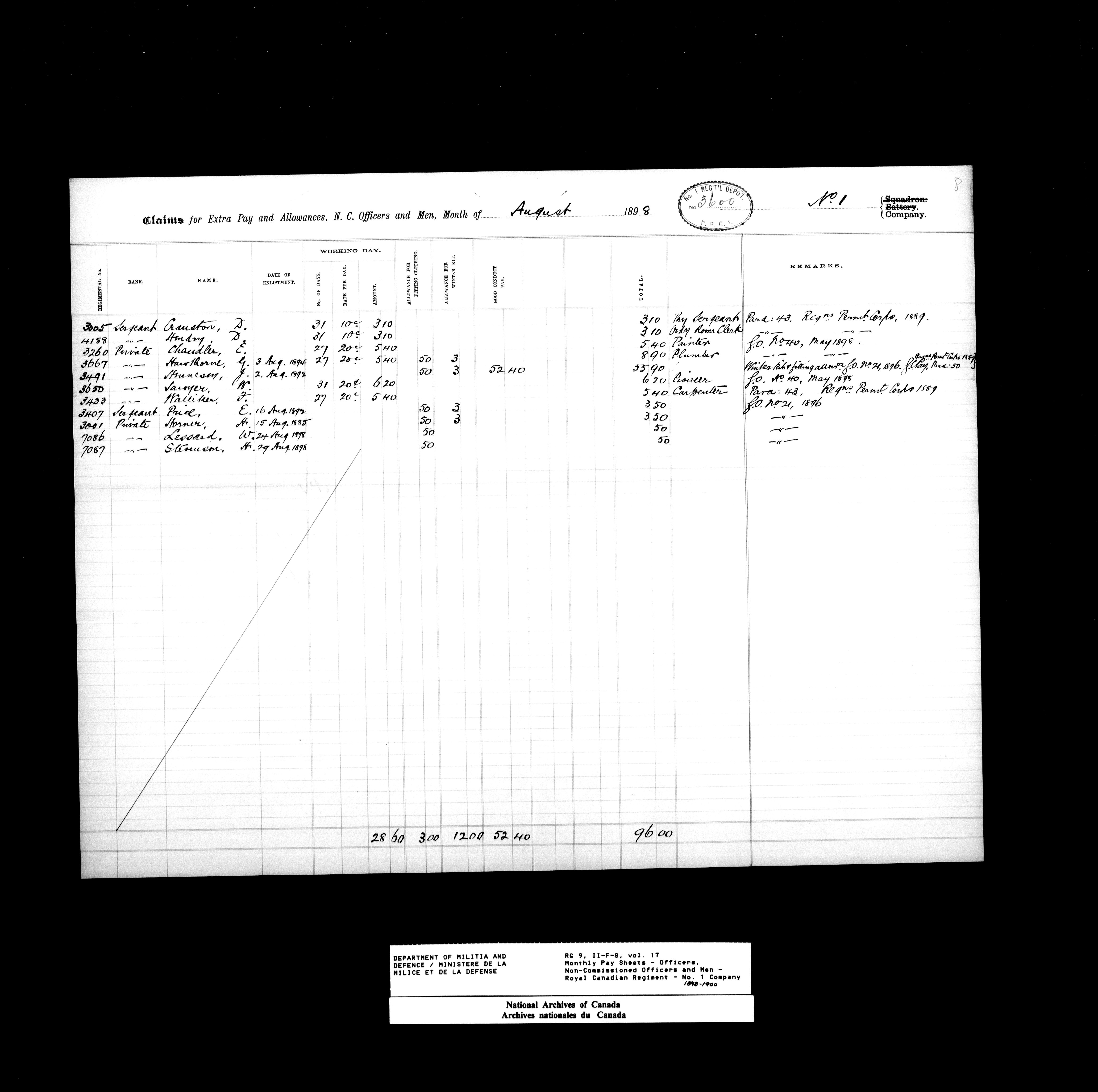 Nominal rolls and paylists for the Permanent Force (1871-1915) - 17439
