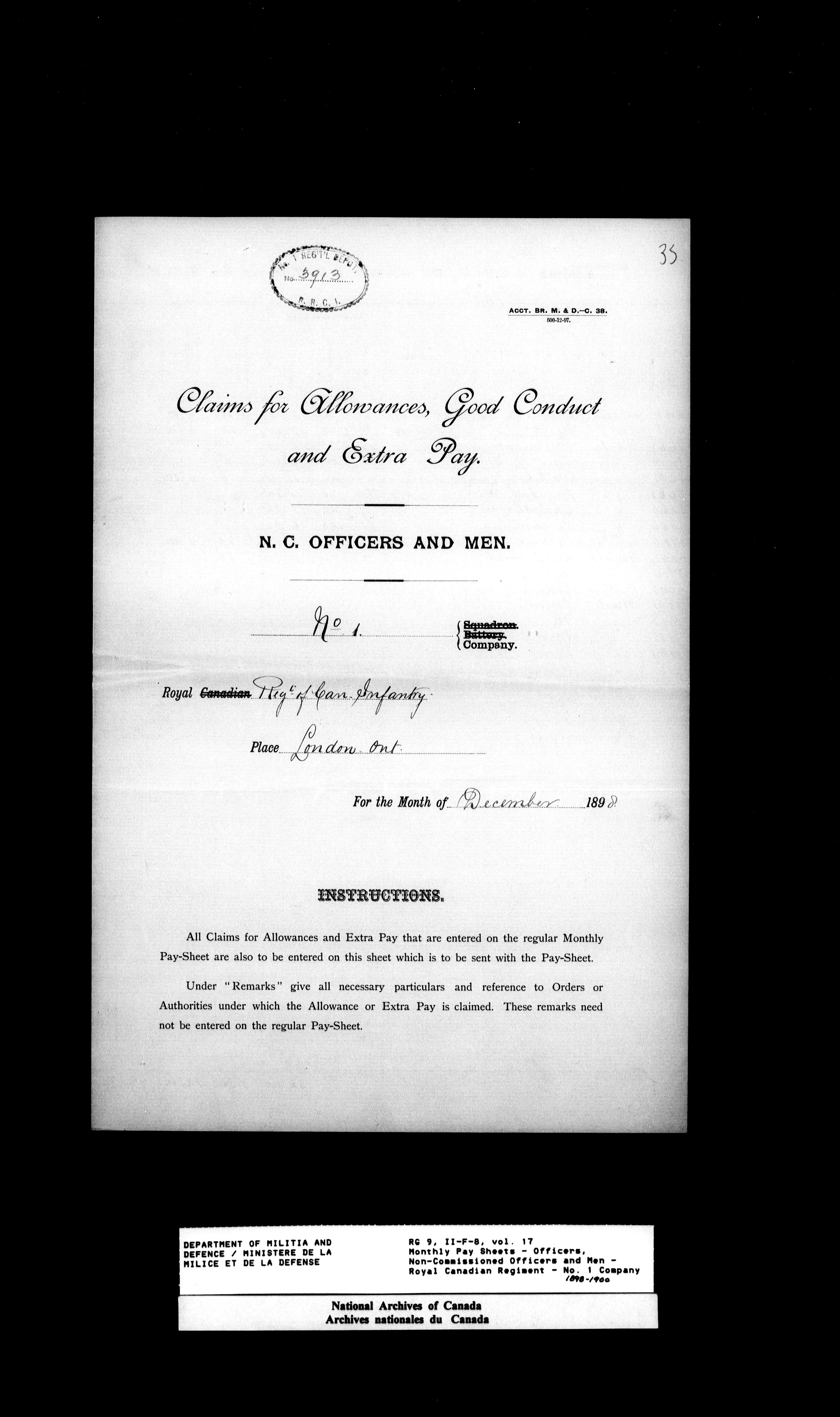 Nominal rolls and paylists for the Permanent Force (1871-1915) - 17439