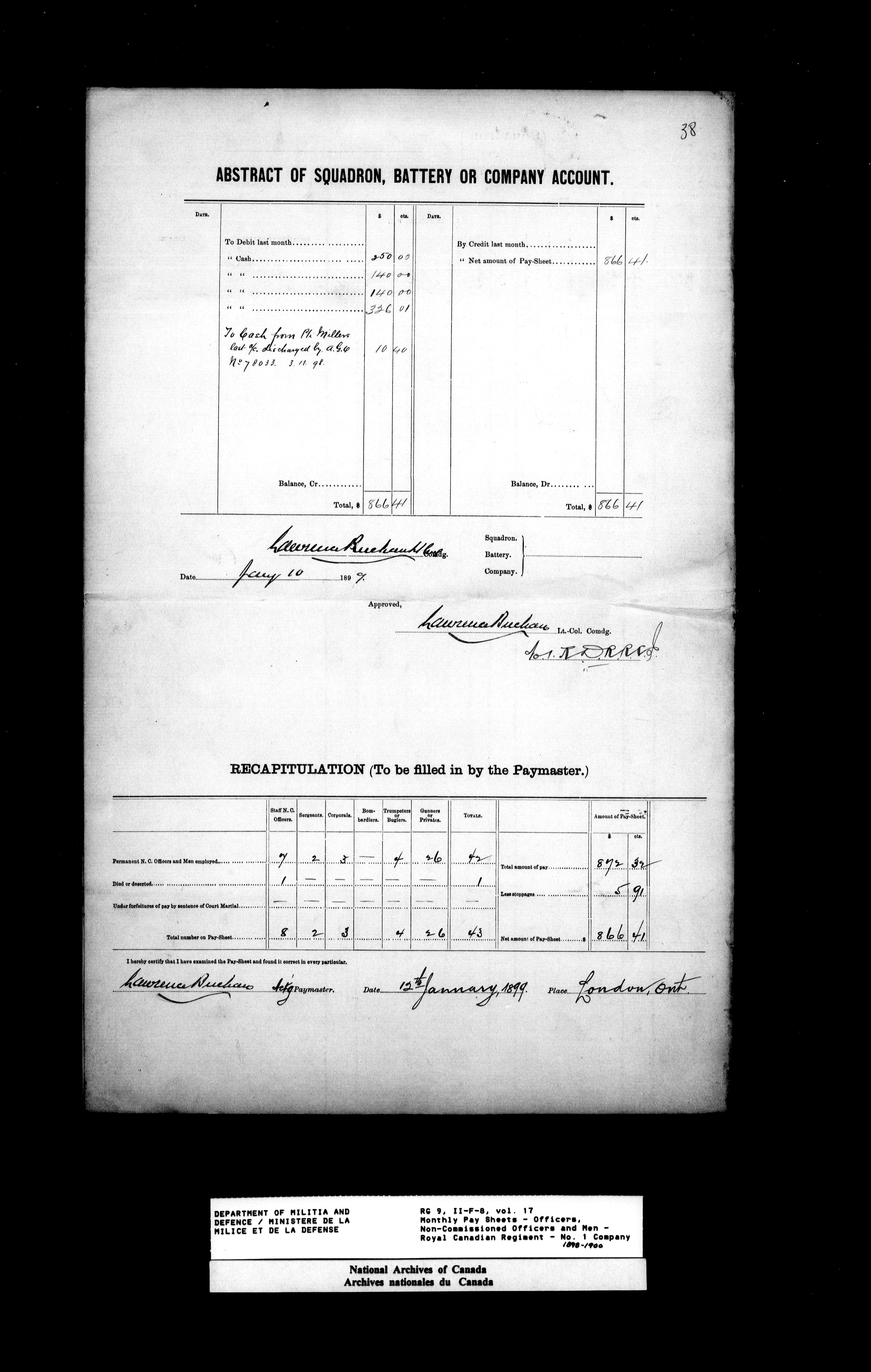 Nominal rolls and paylists for the Permanent Force (1871-1915) - 17439