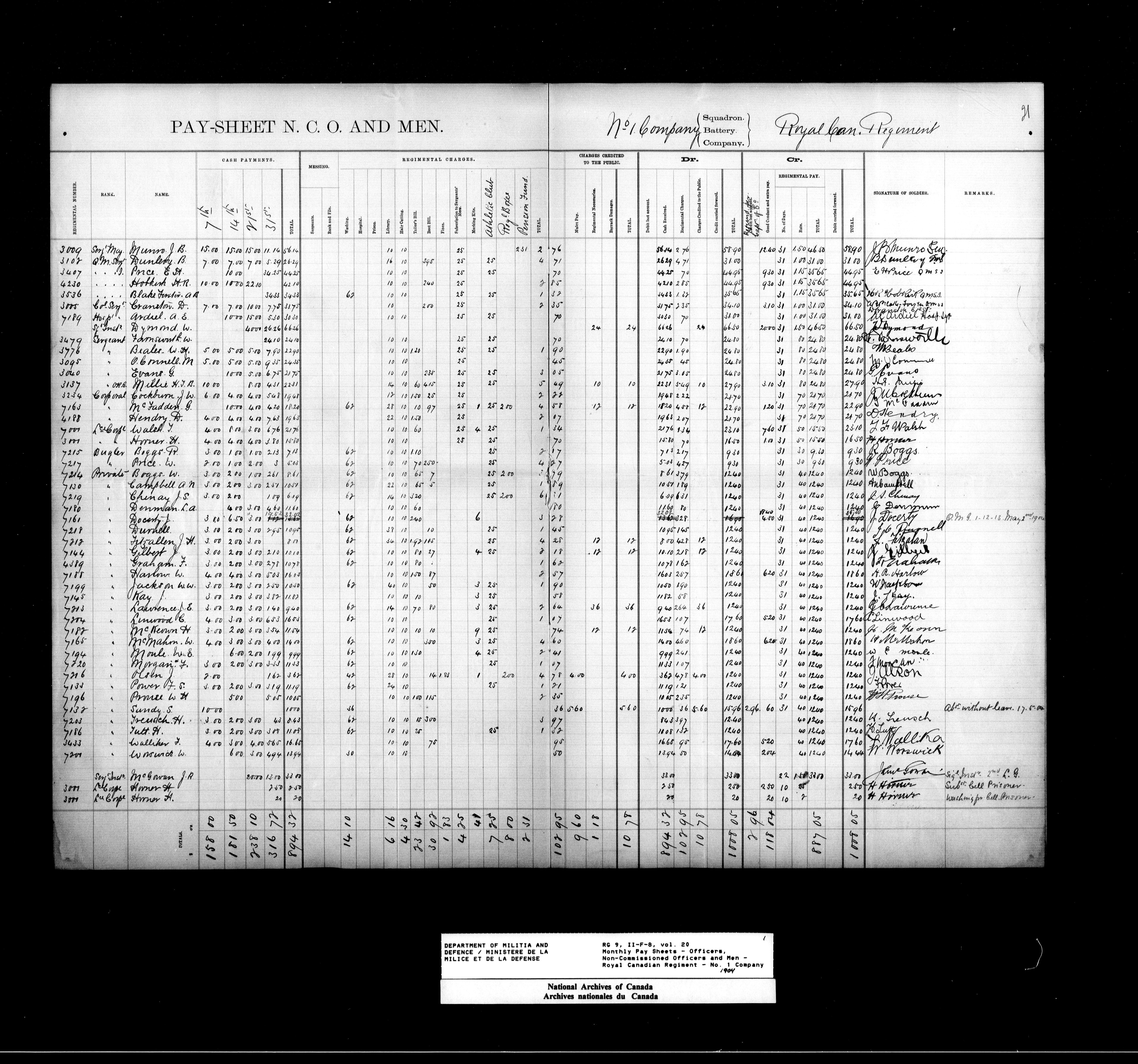 Nominal rolls and paylists for the Permanent Force (1871-1915) - 17440