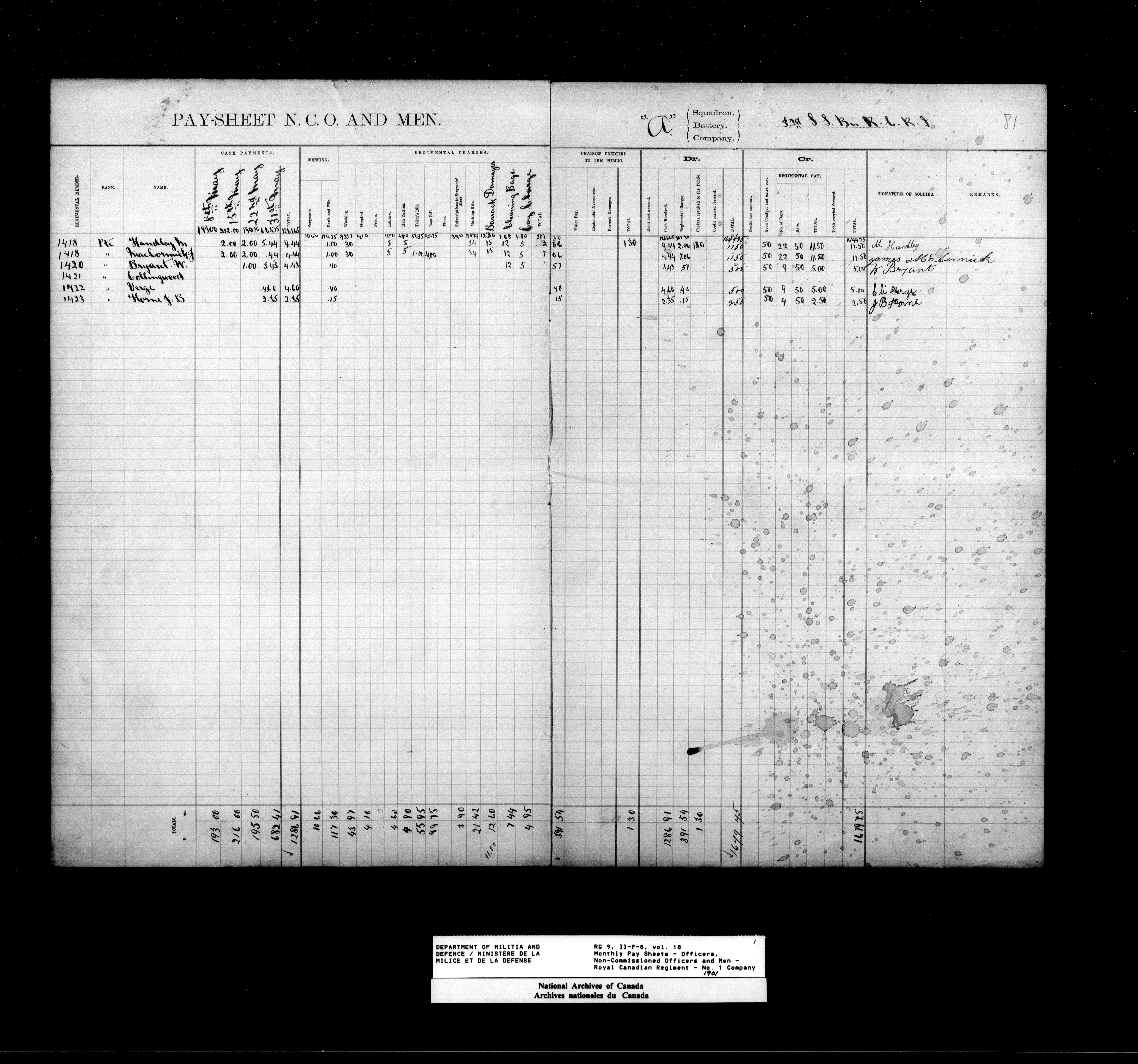 Nominal rolls and paylists for the Permanent Force (1871-1915) - 17440
