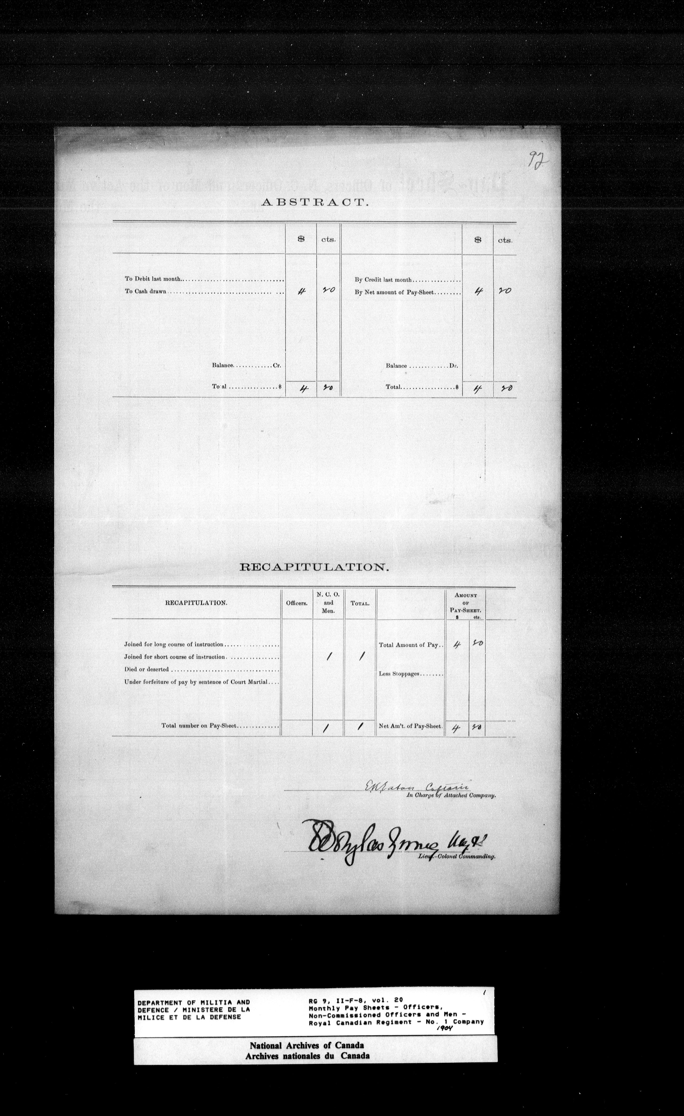 Nominal rolls and paylists for the Permanent Force (1871-1915) - 17441