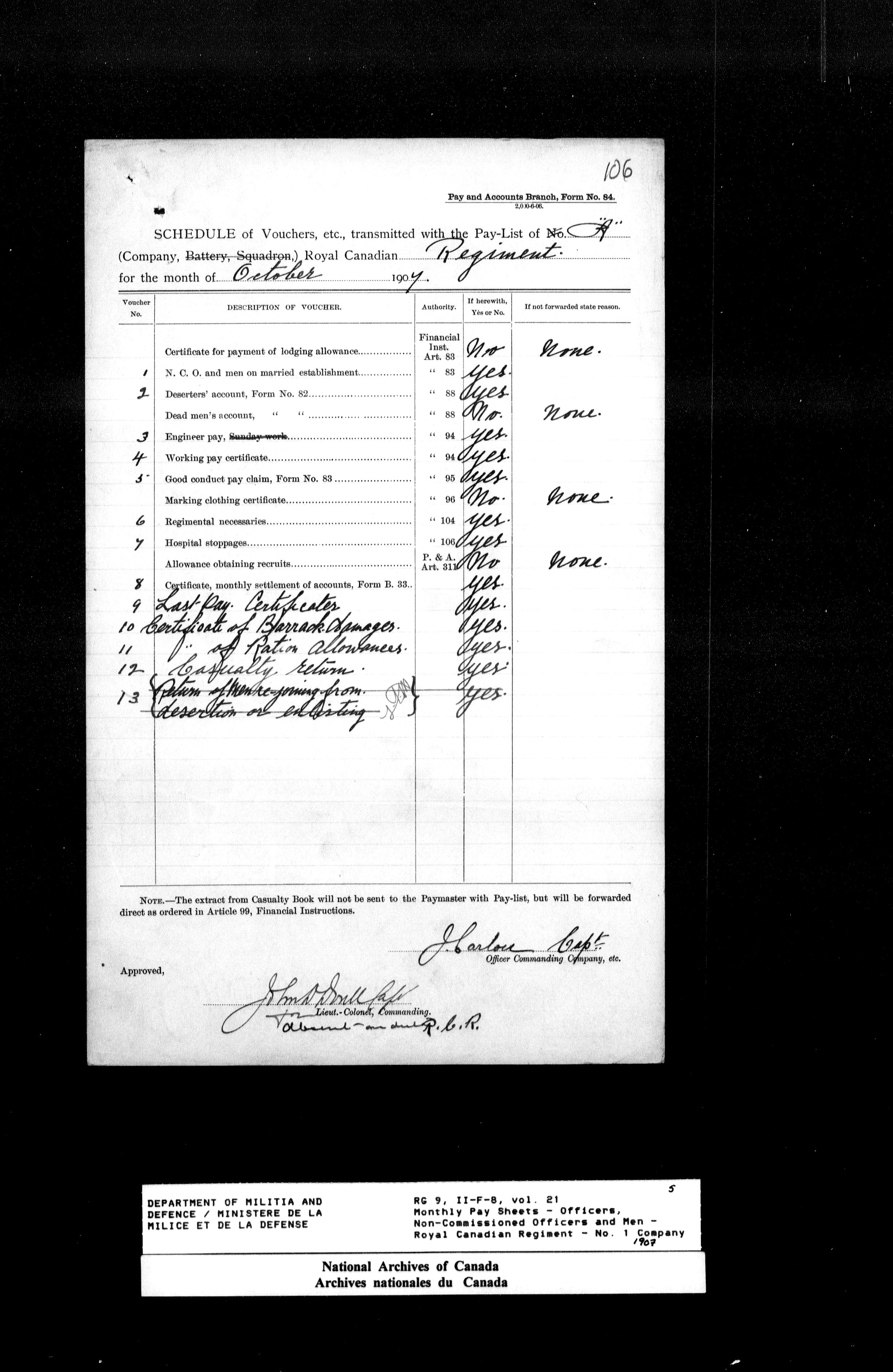 Nominal rolls and paylists for the Permanent Force (1871-1915) - 17441