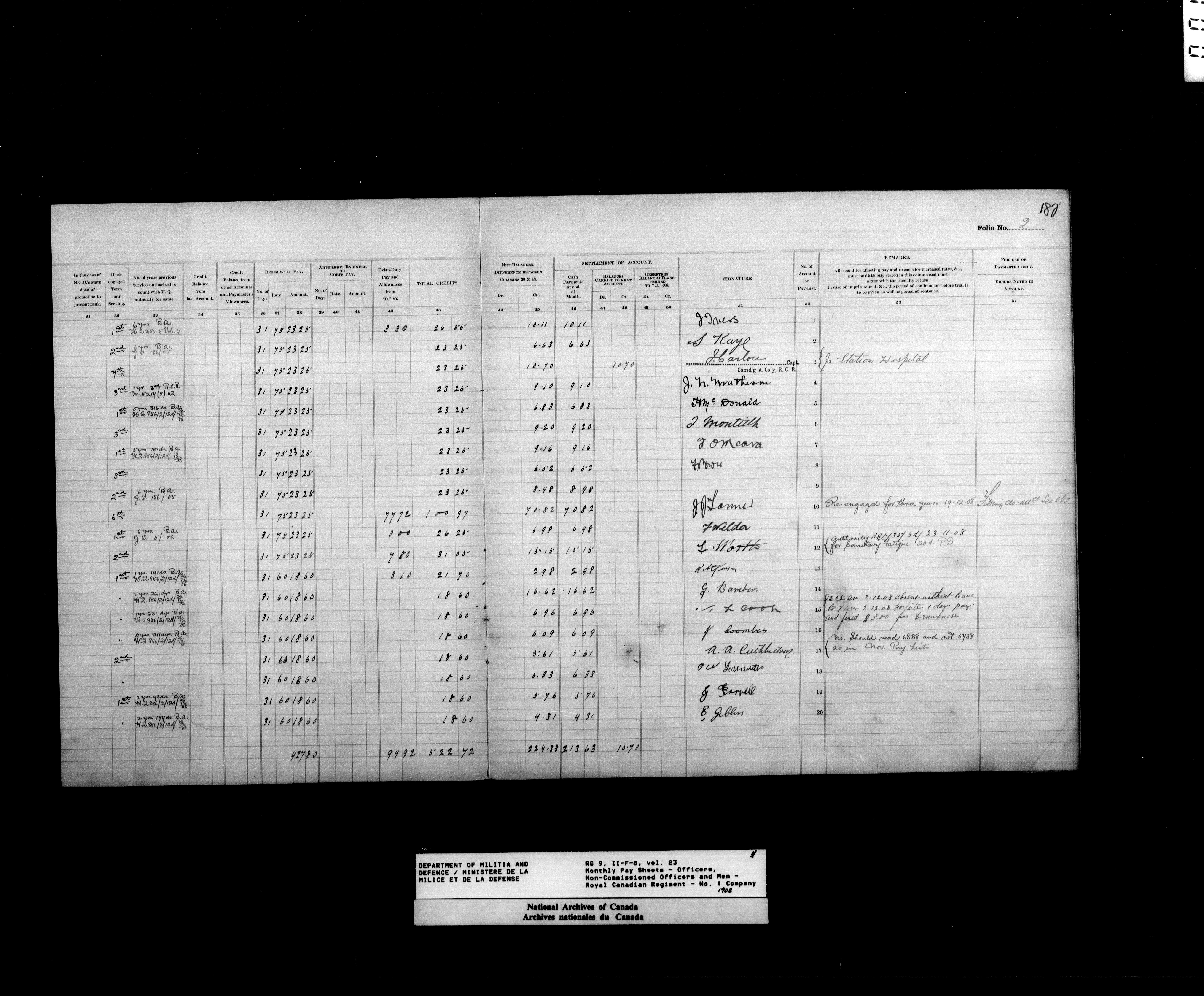 Nominal rolls and paylists for the Permanent Force (1871-1915) - 17442