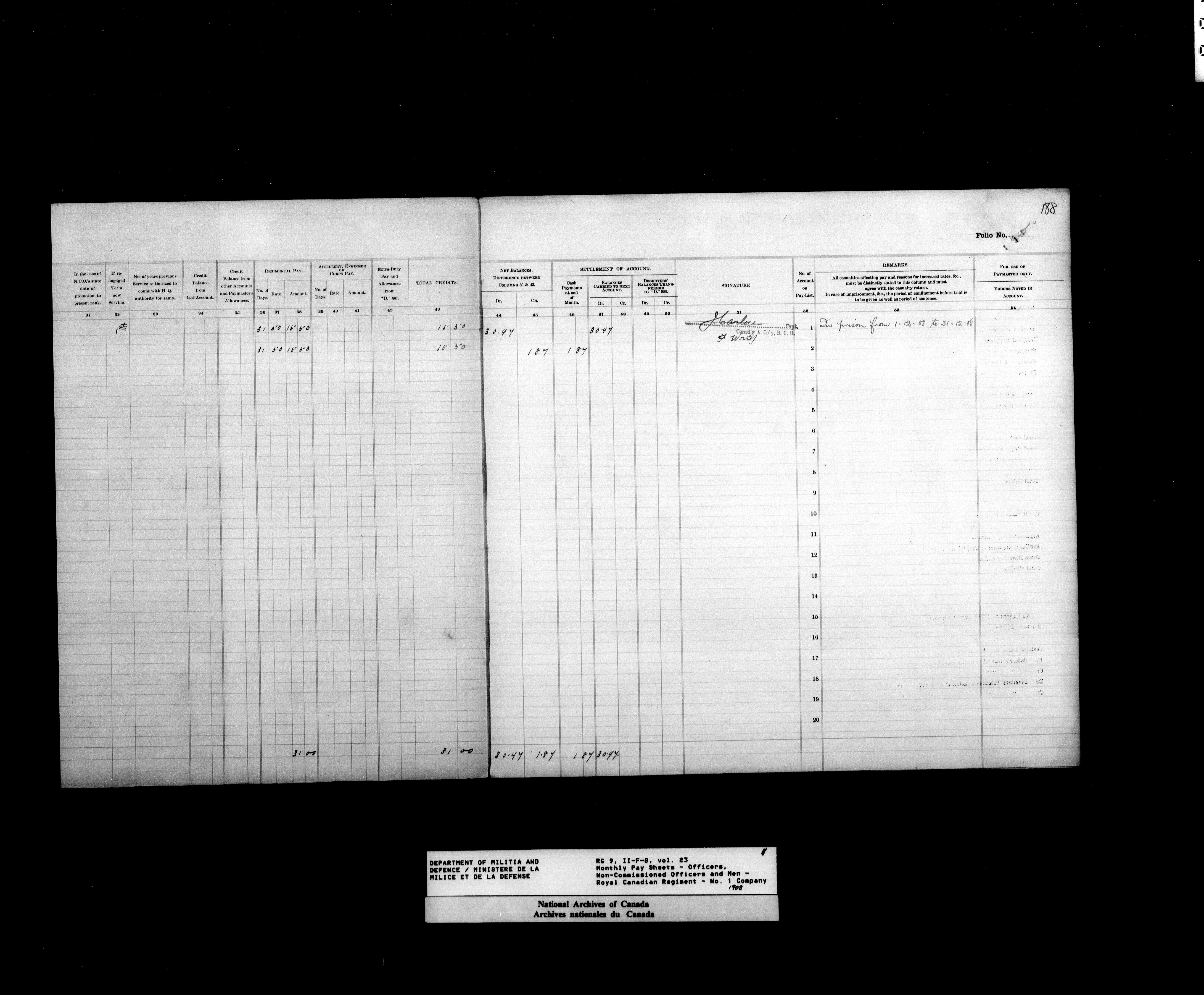 Nominal rolls and paylists for the Permanent Force (1871-1915) - 17442