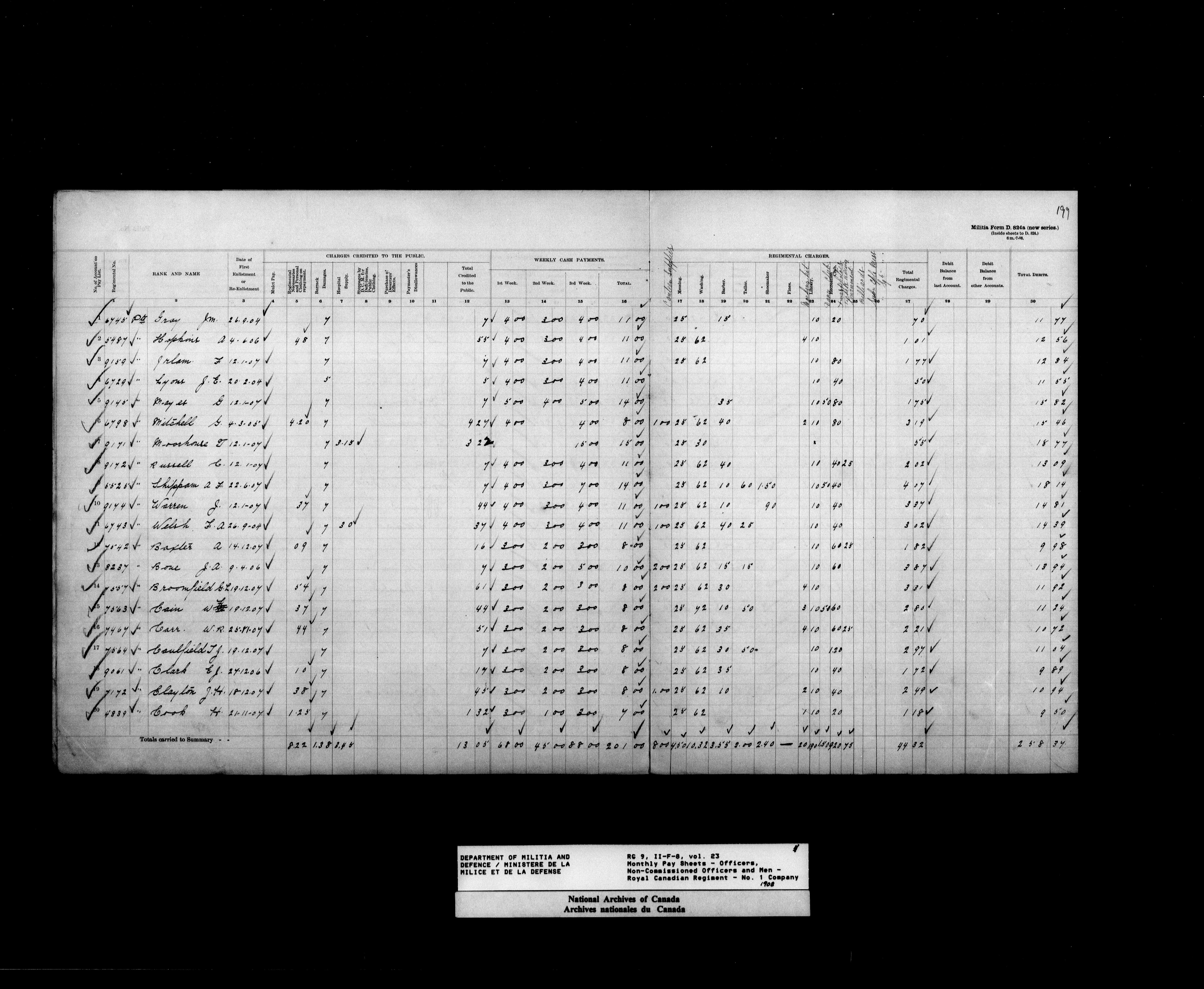 Nominal rolls and paylists for the Permanent Force (1871-1915) - 17442