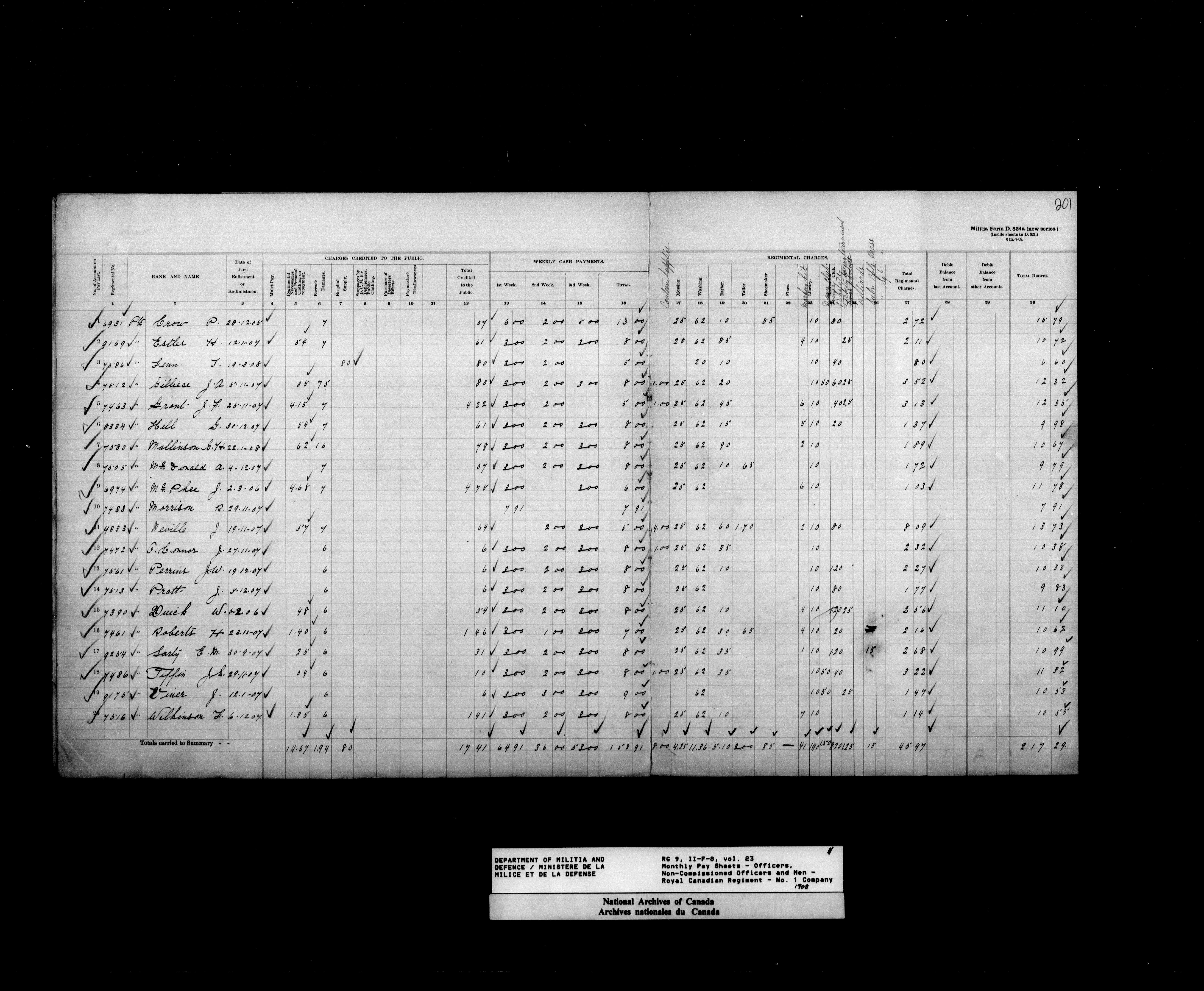 Nominal rolls and paylists for the Permanent Force (1871-1915) - 17442