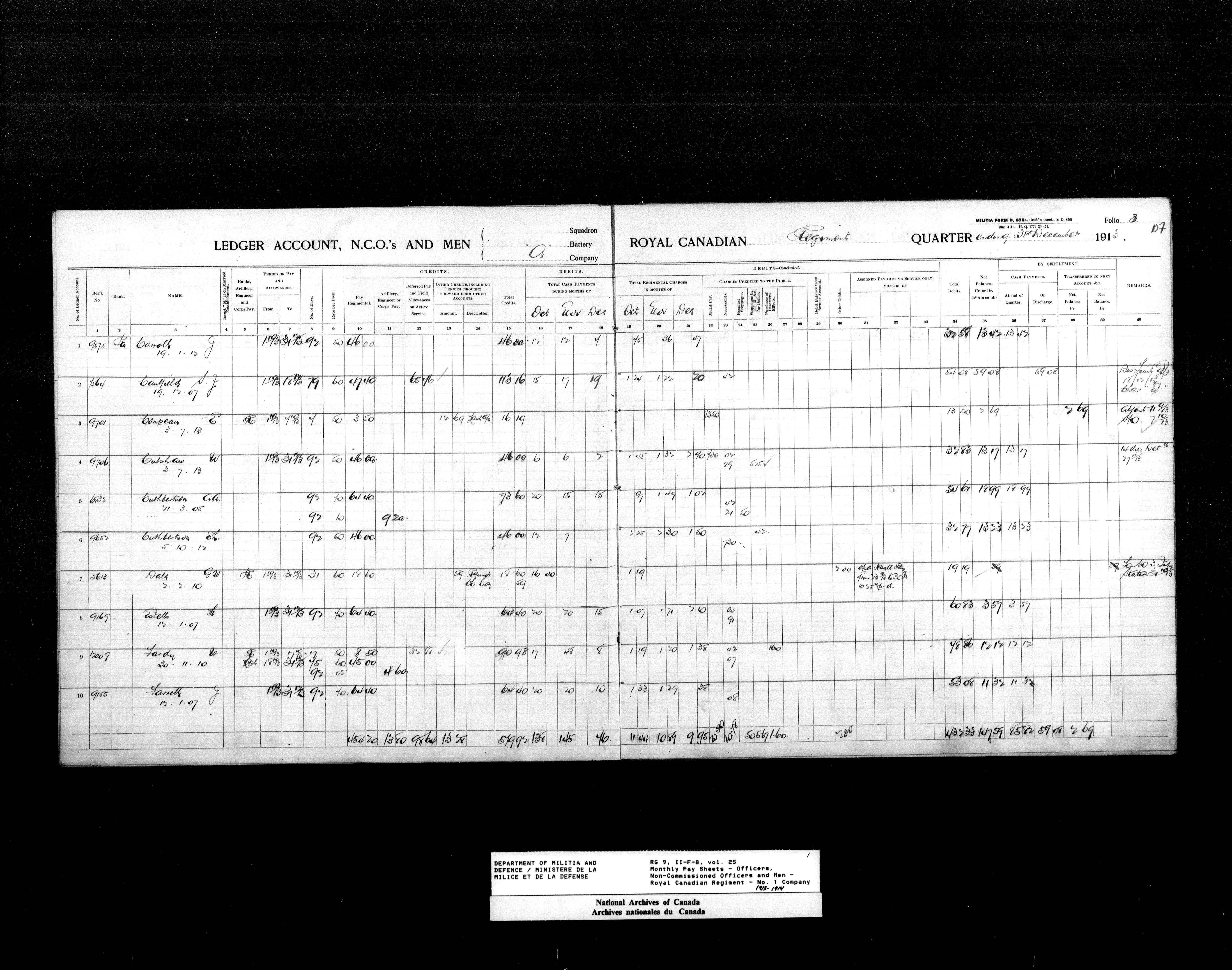 Nominal rolls and paylists for the Permanent Force (1871-1915) - 17444