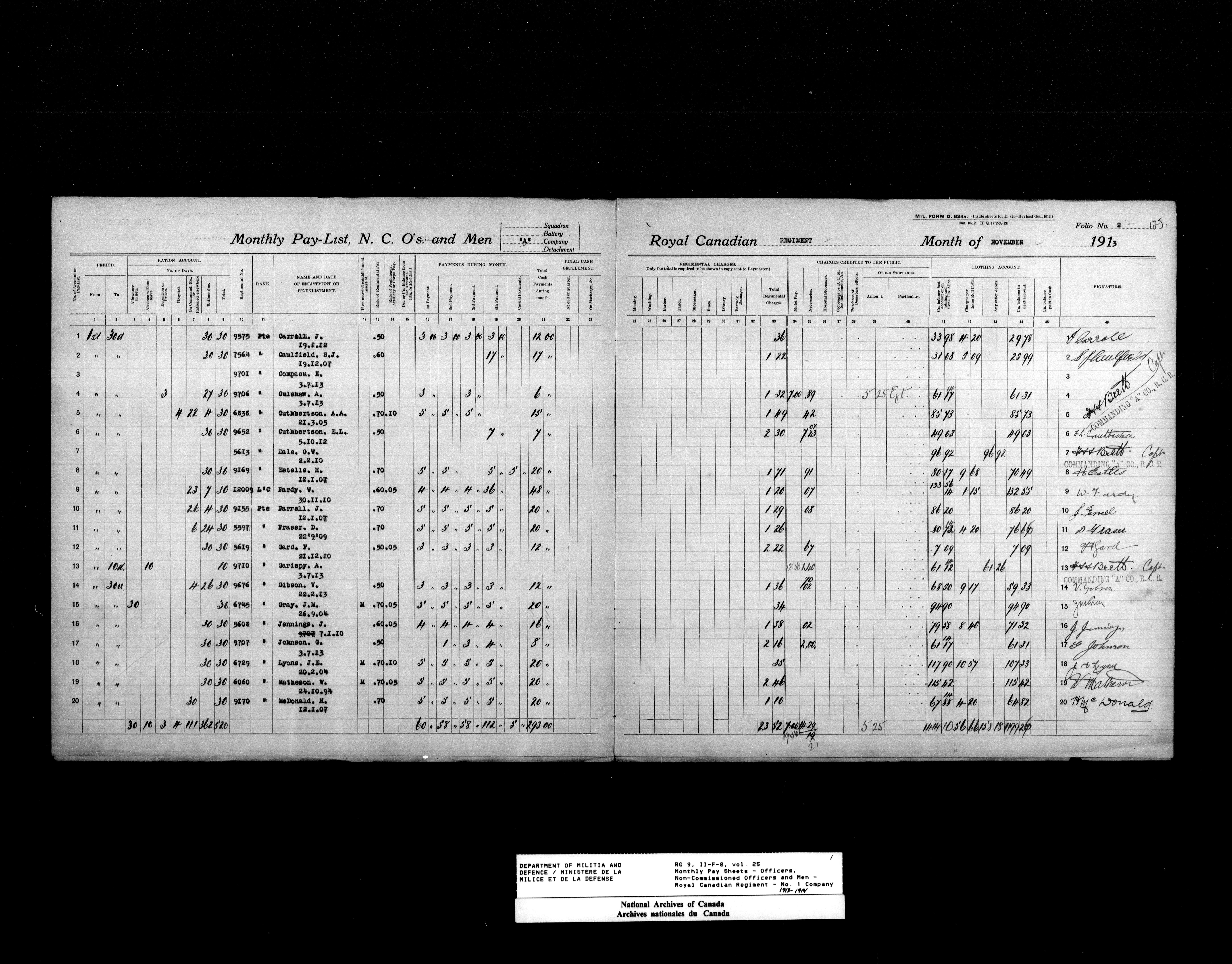 Nominal rolls and paylists for the Permanent Force (1871-1915) - 17444