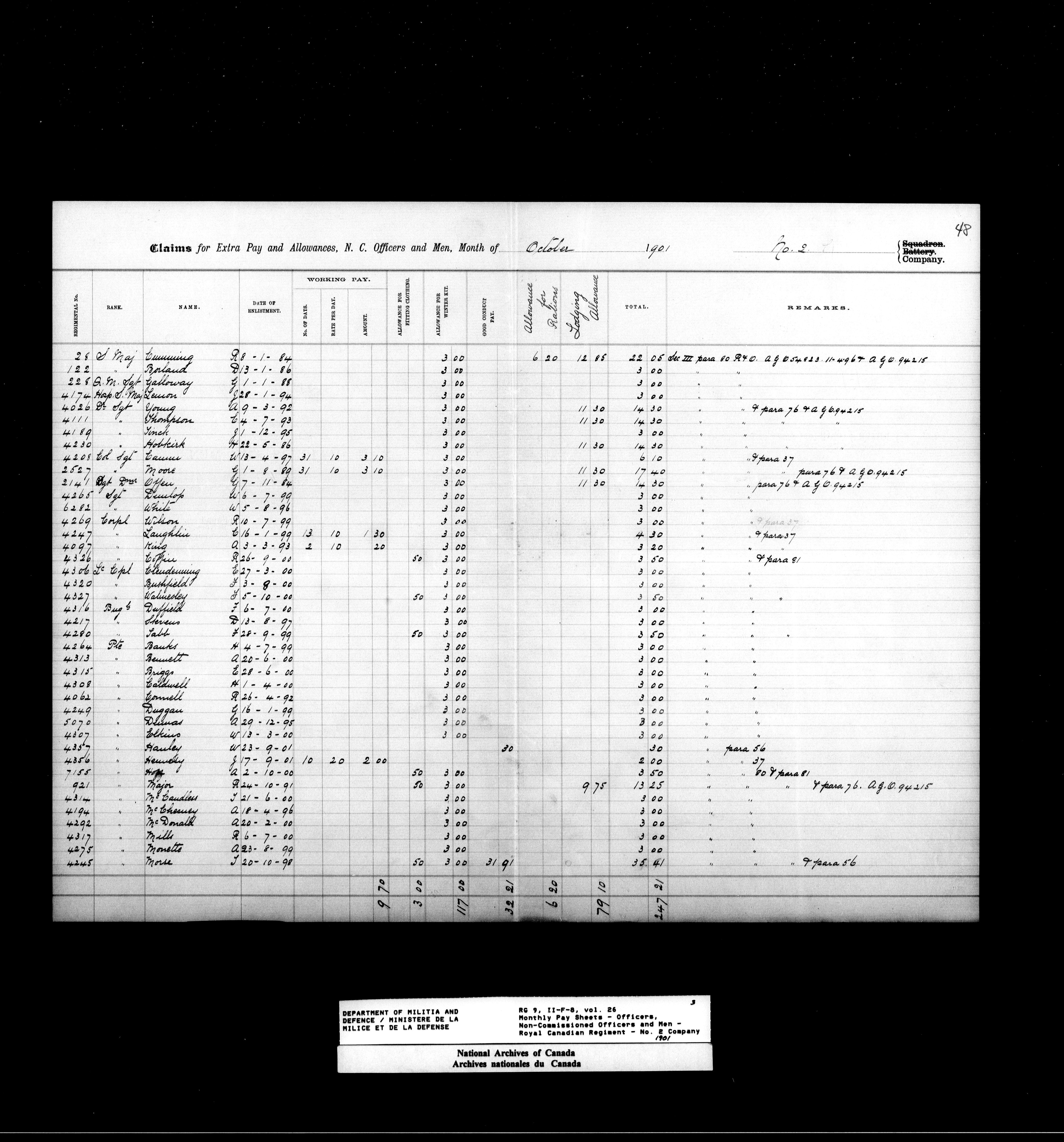 Nominal rolls and paylists for the Permanent Force (1871-1915) - 17445