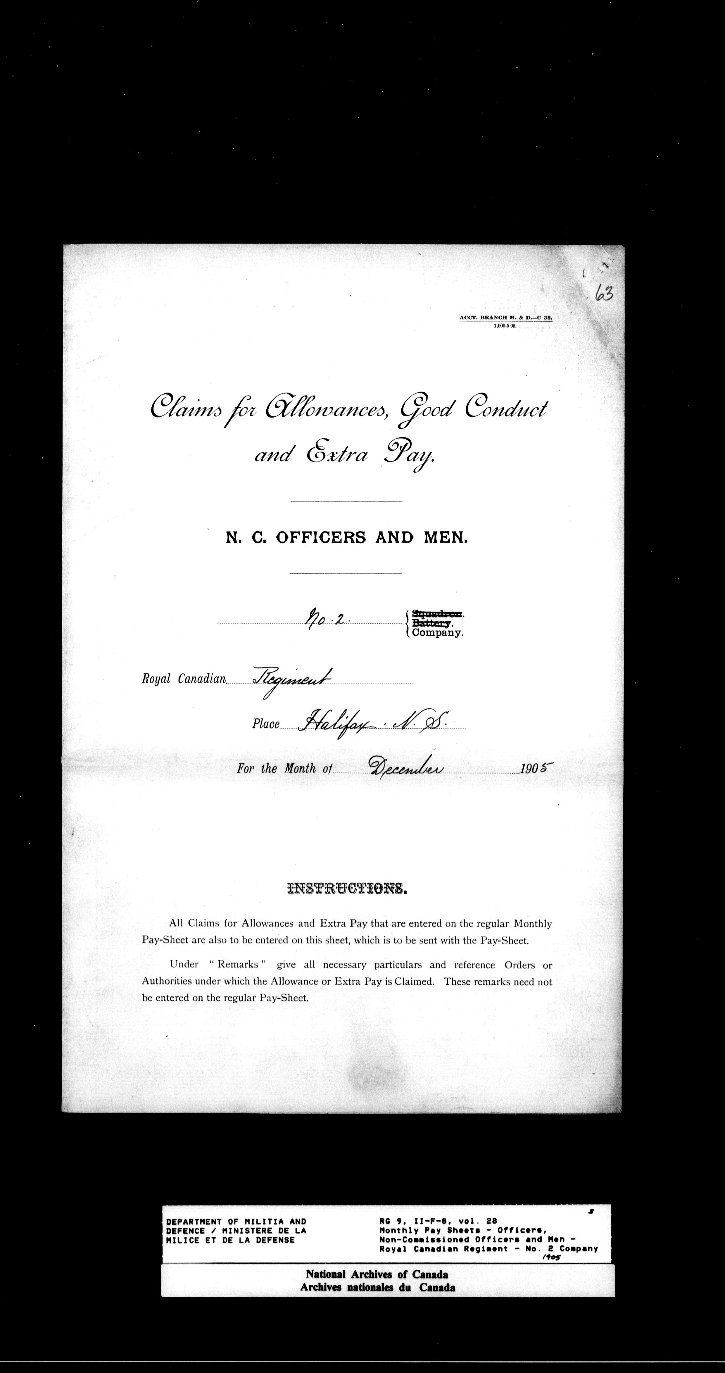 Nominal rolls and paylists for the Permanent Force (1871-1915) - 17445