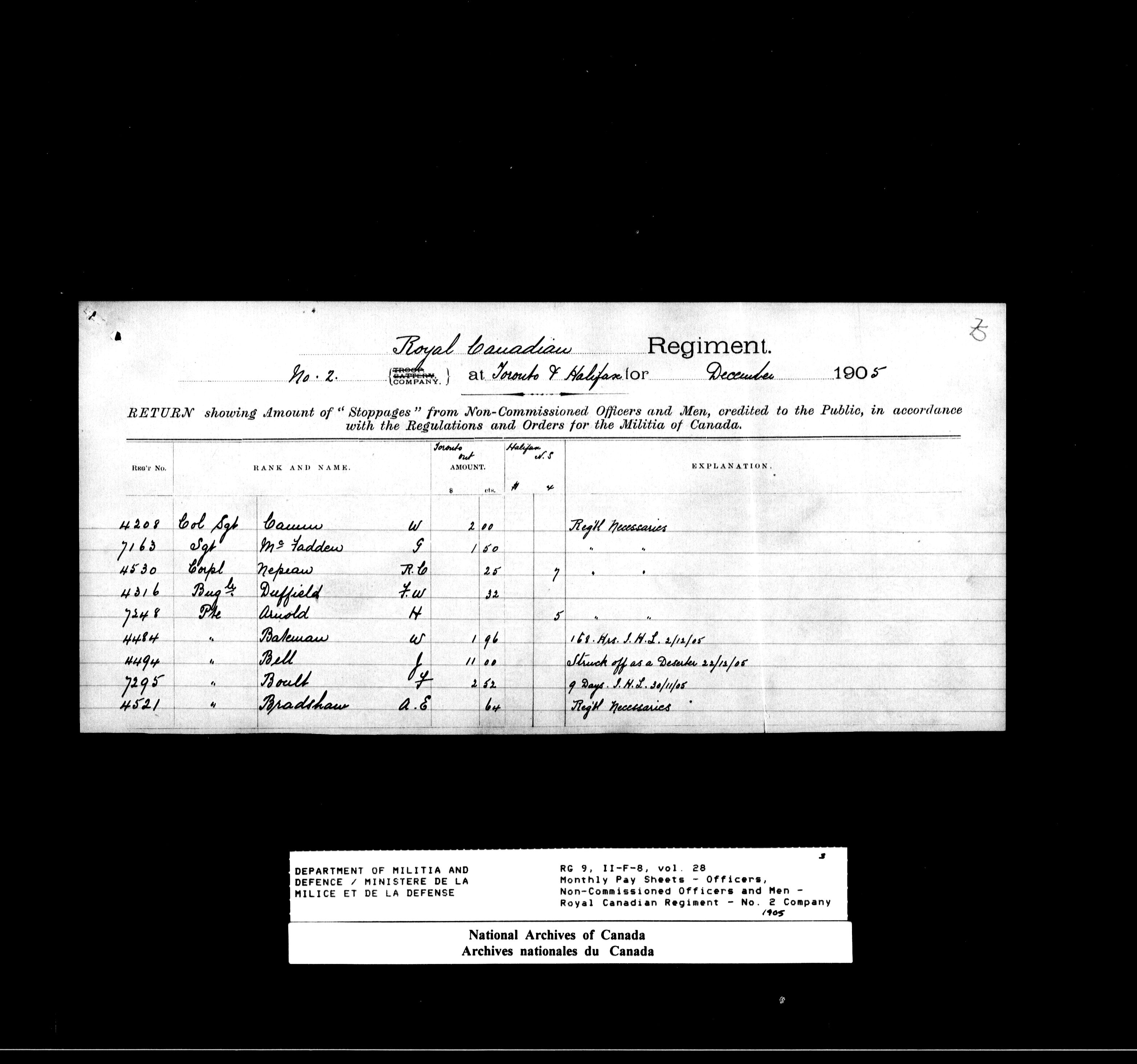 Nominal rolls and paylists for the Permanent Force (1871-1915) - 17445
