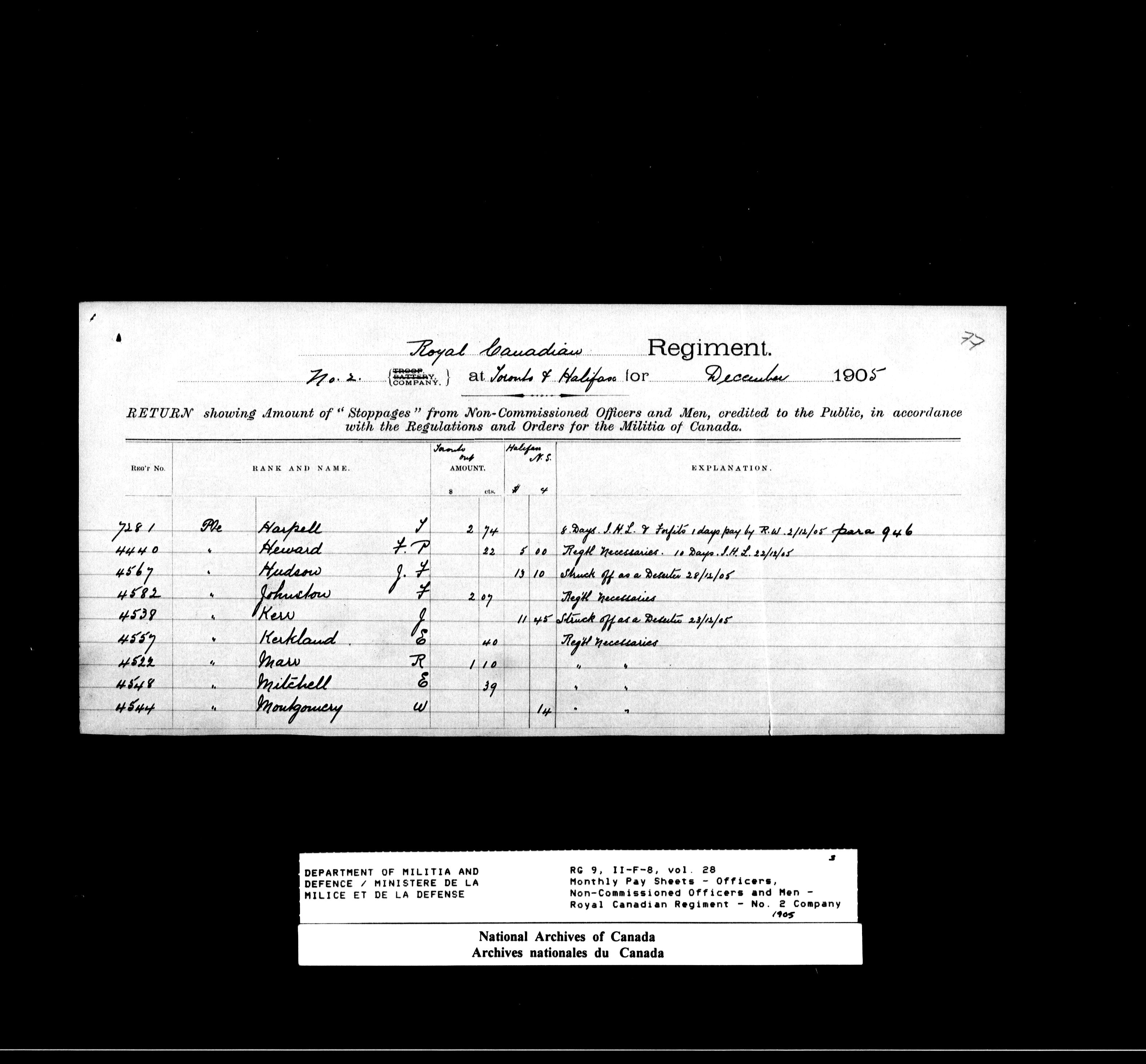 Nominal rolls and paylists for the Permanent Force (1871-1915) - 17445