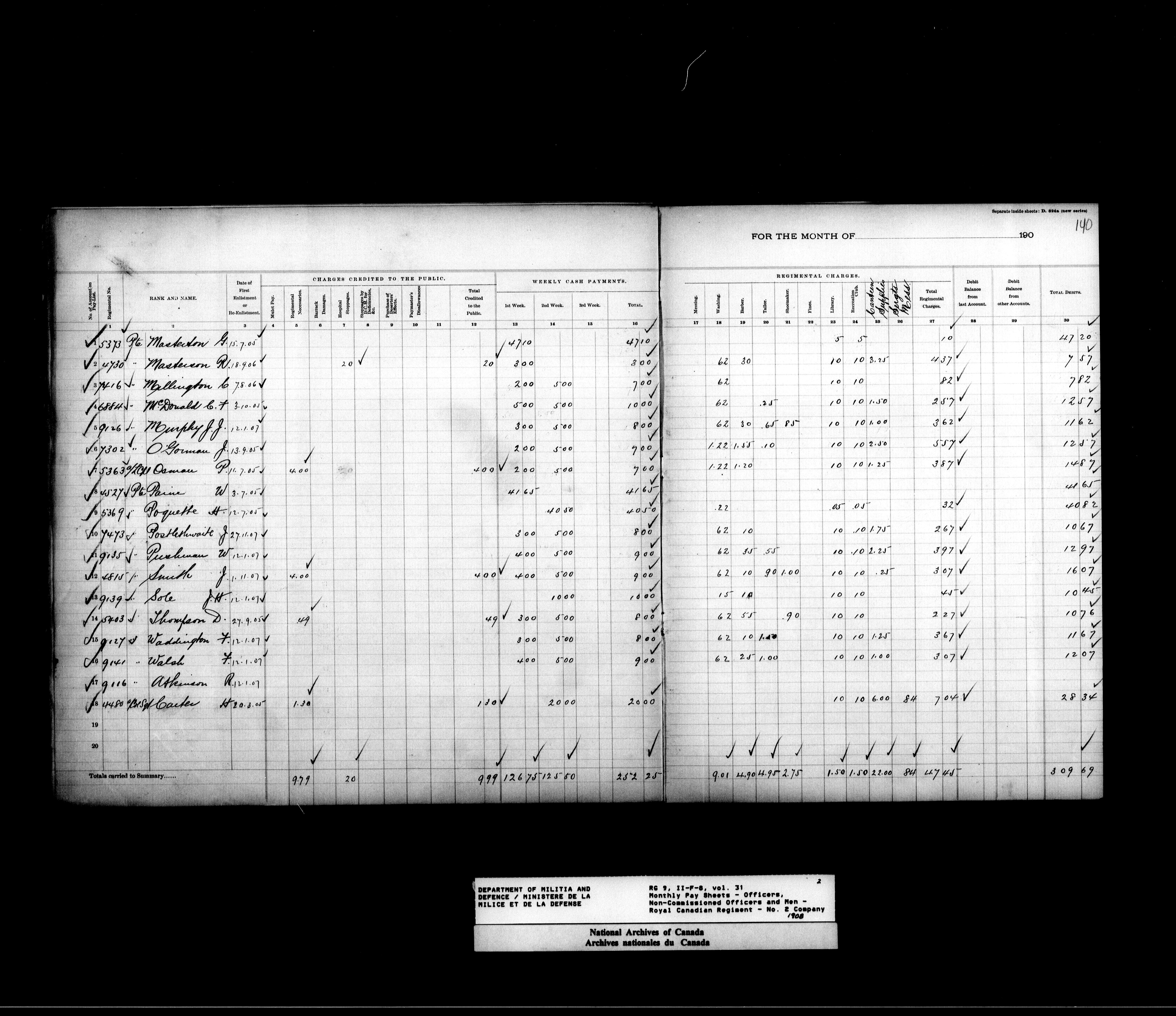 Nominal rolls and paylists for the Permanent Force (1871-1915) - 17447