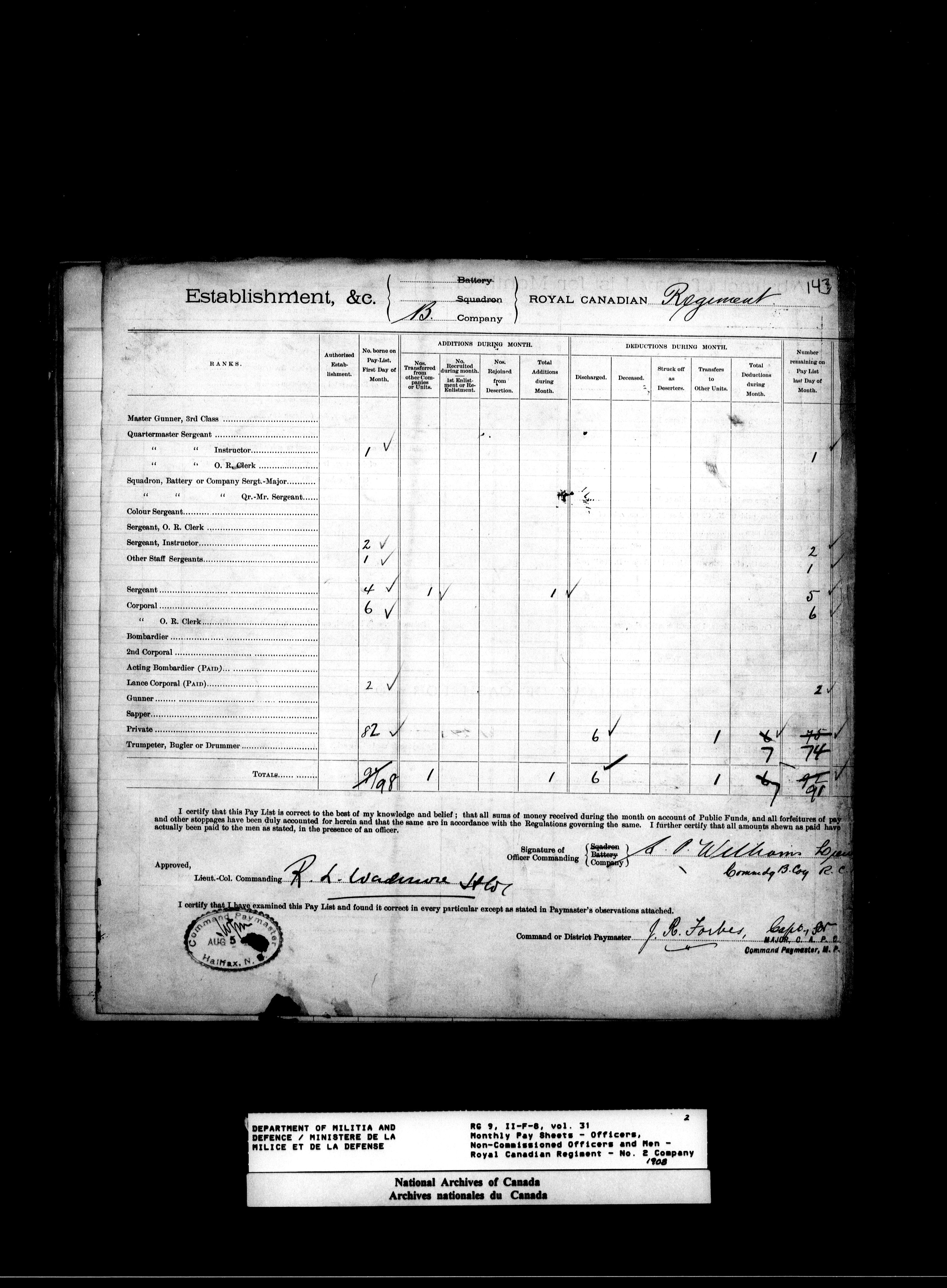 Nominal rolls and paylists for the Permanent Force (1871-1915) - 17447