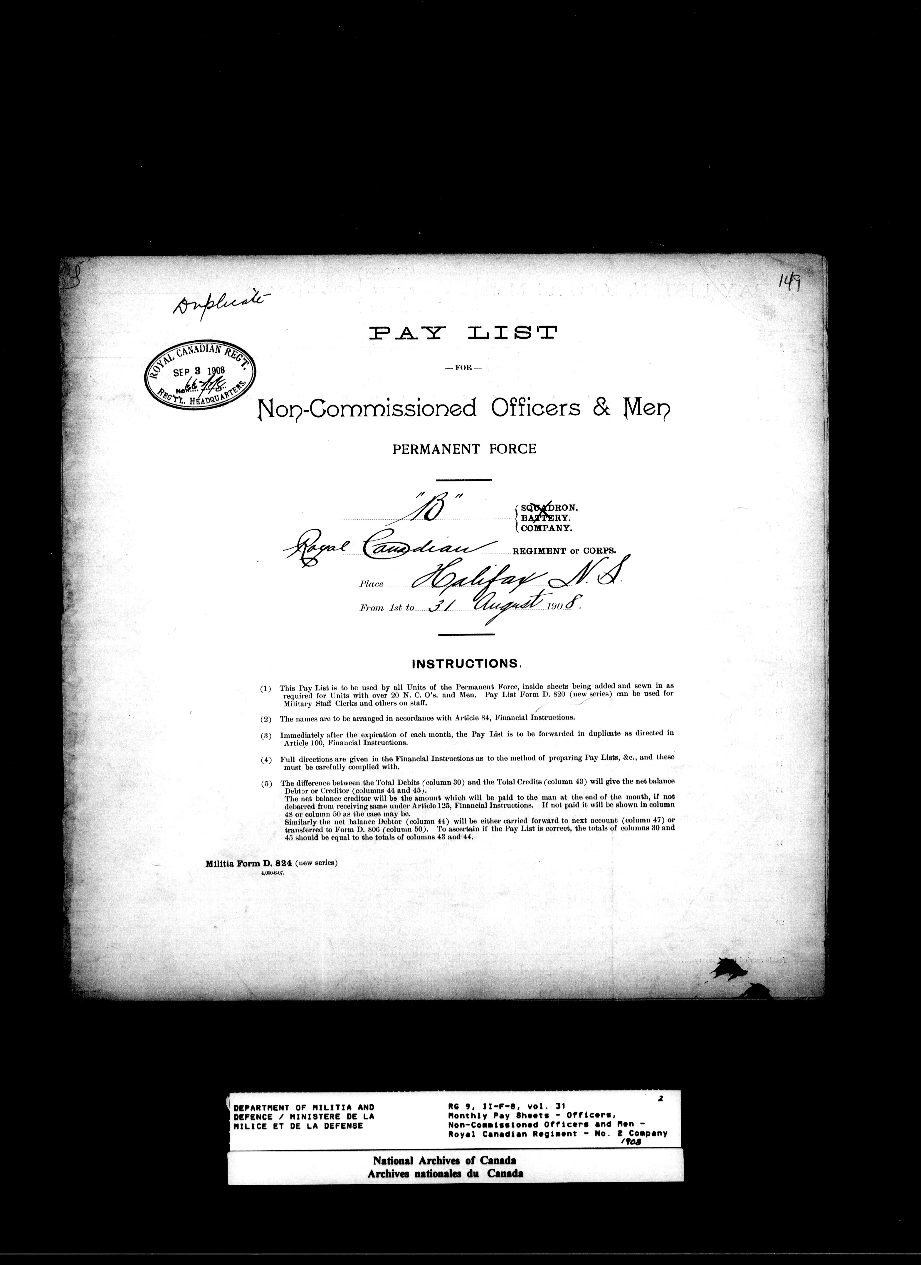 Nominal rolls and paylists for the Permanent Force (1871-1915) - 17447