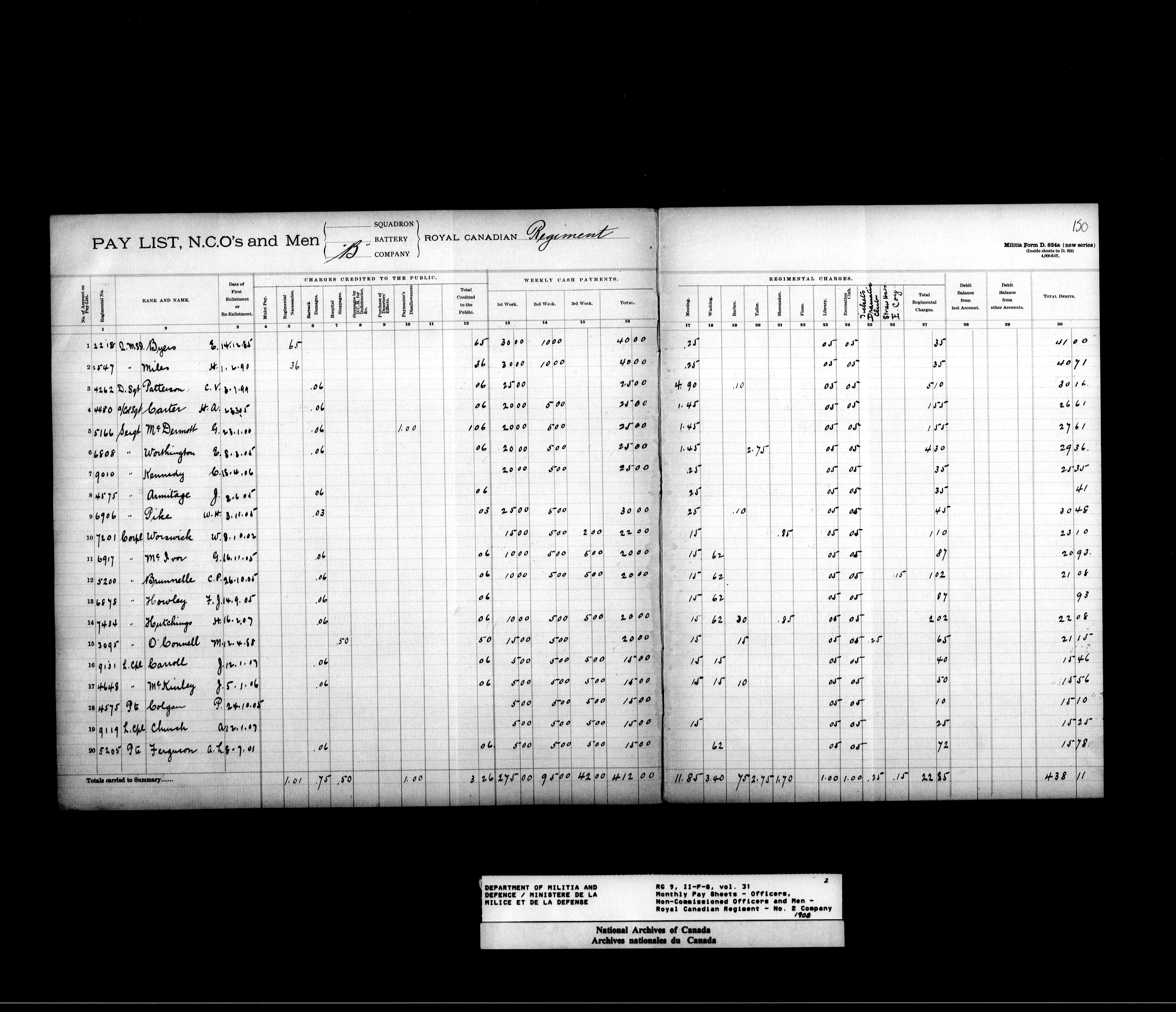 Nominal rolls and paylists for the Permanent Force (1871-1915) - 17447