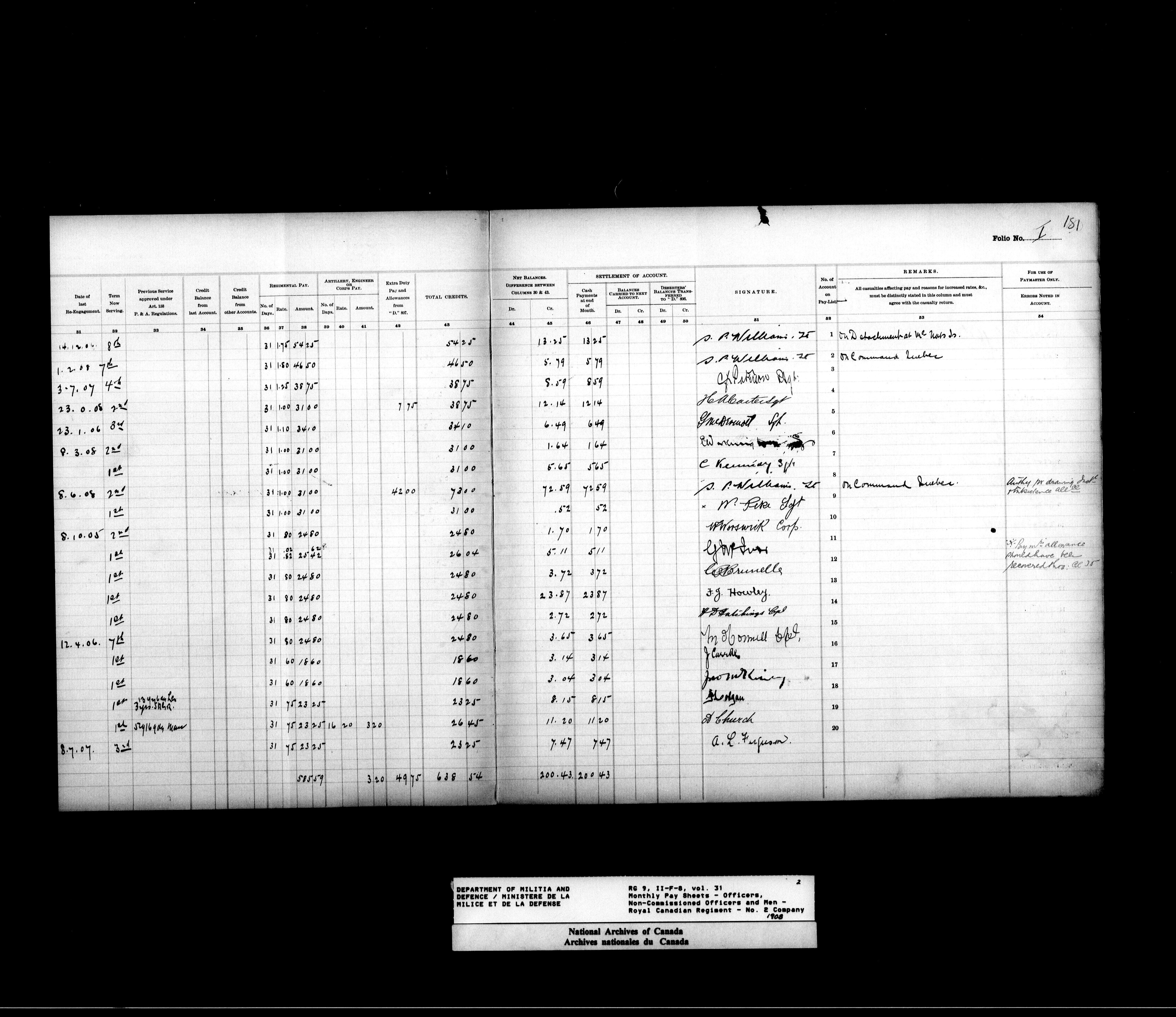 Nominal rolls and paylists for the Permanent Force (1871-1915) - 17447