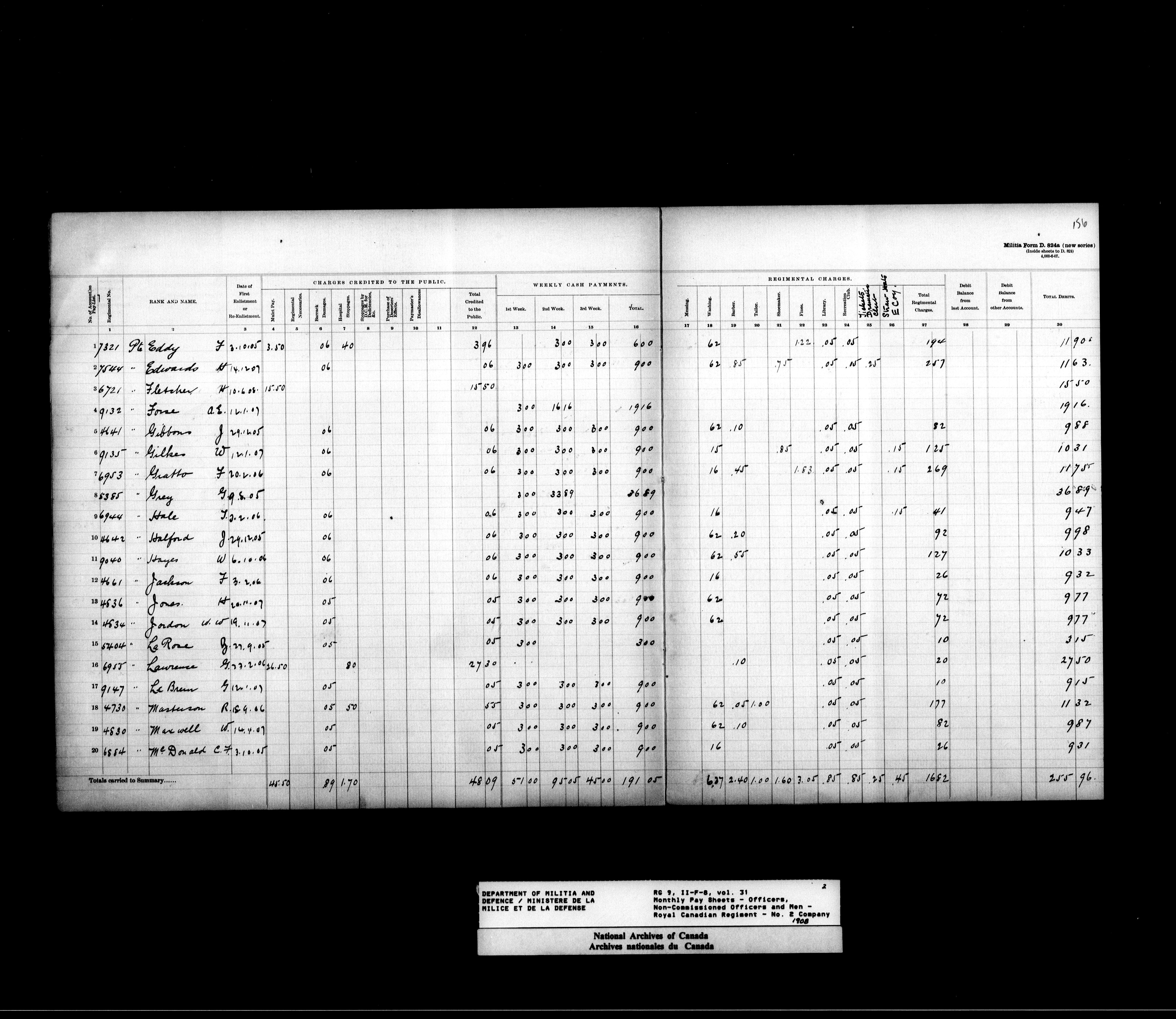 Nominal rolls and paylists for the Permanent Force (1871-1915) - 17447