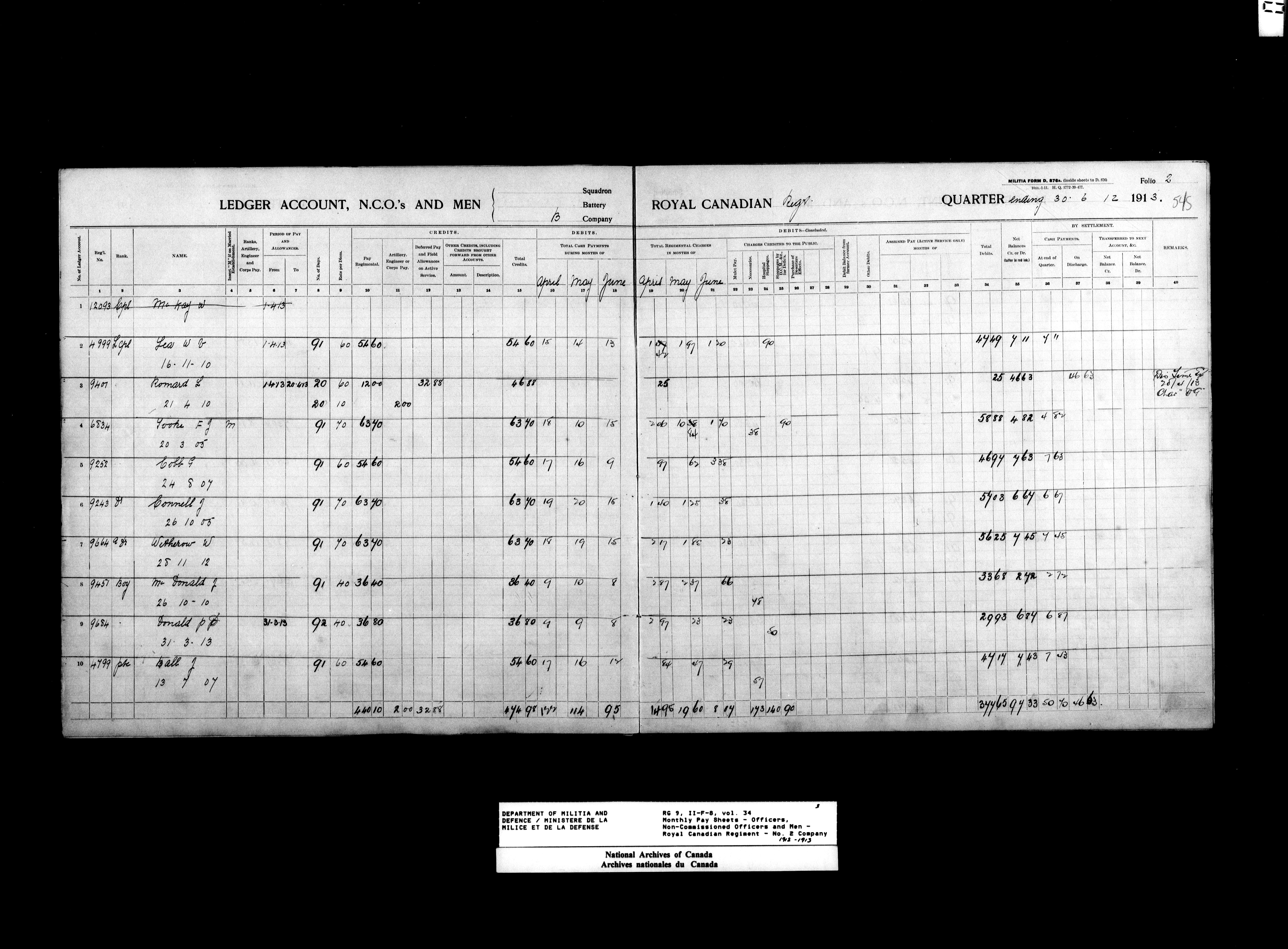 Nominal rolls and paylists for the Permanent Force (1871-1915) - 17449