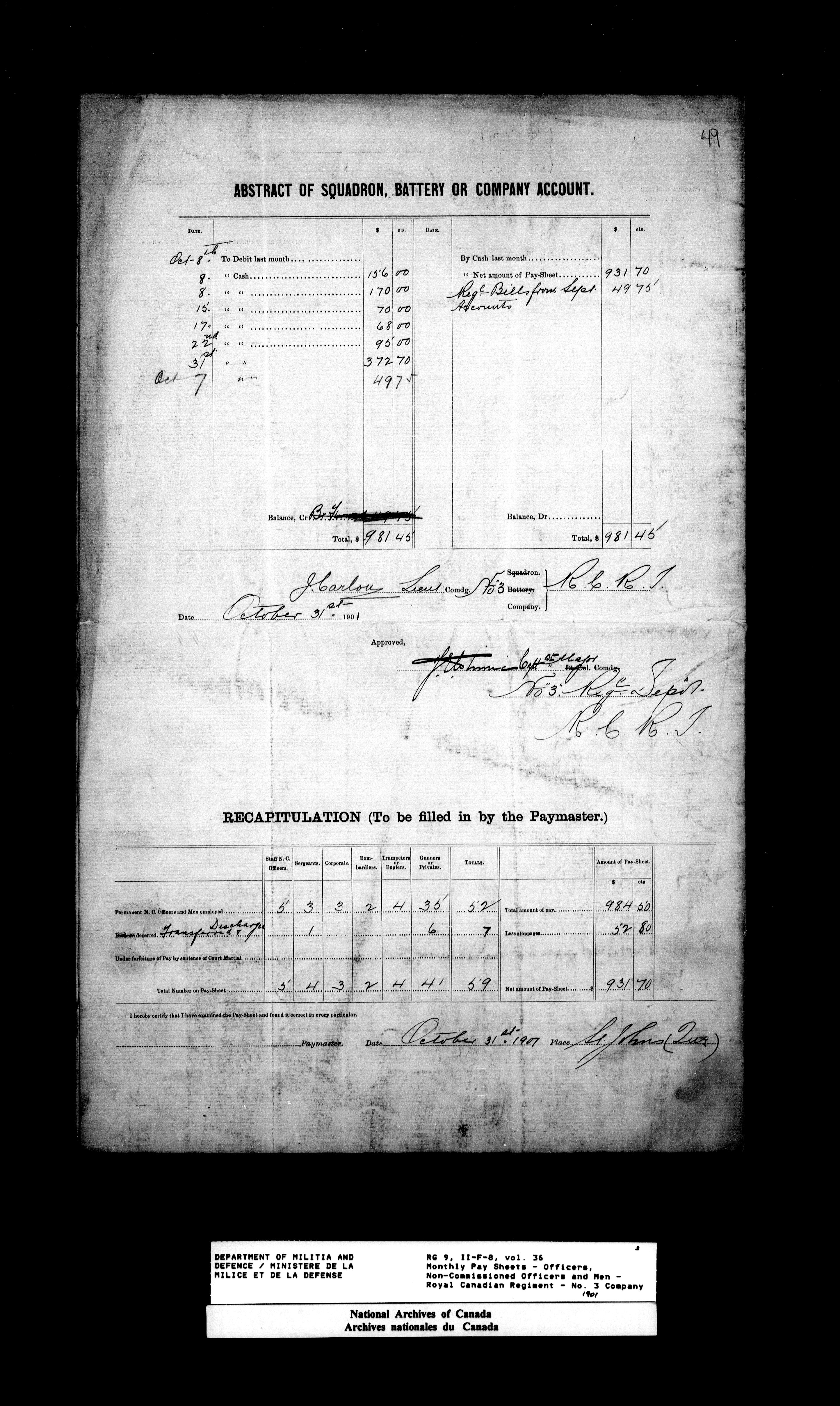 Nominal rolls and paylists for the Permanent Force (1871-1915) - 17449