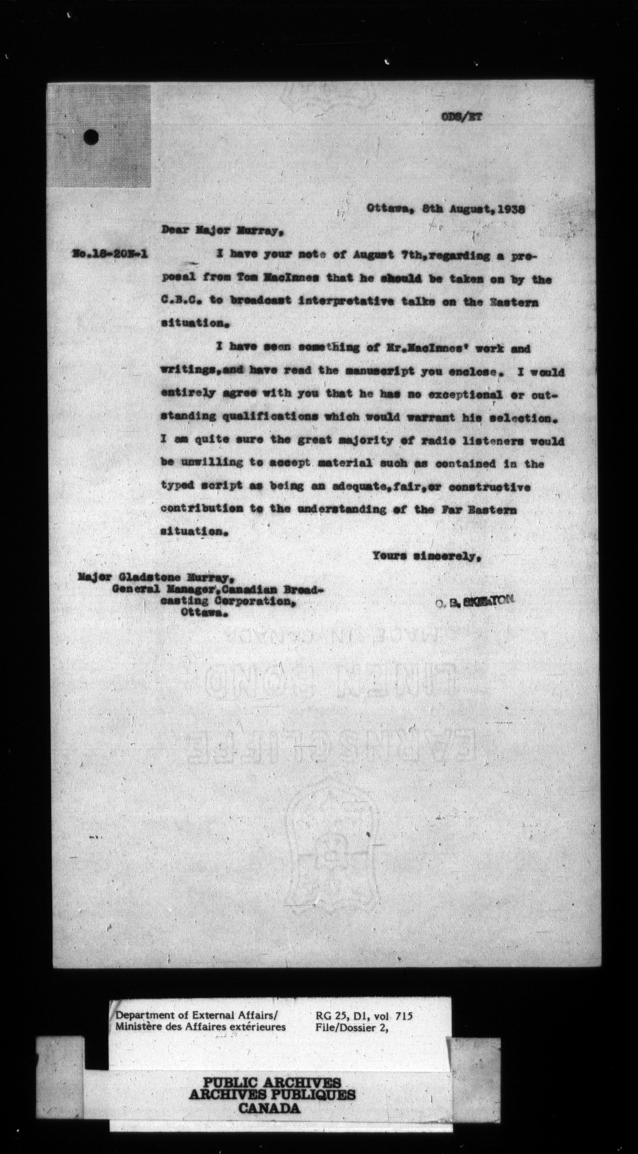 Department of External Affairs : Office of the Under-Secretary of State for External Affairs - 1745