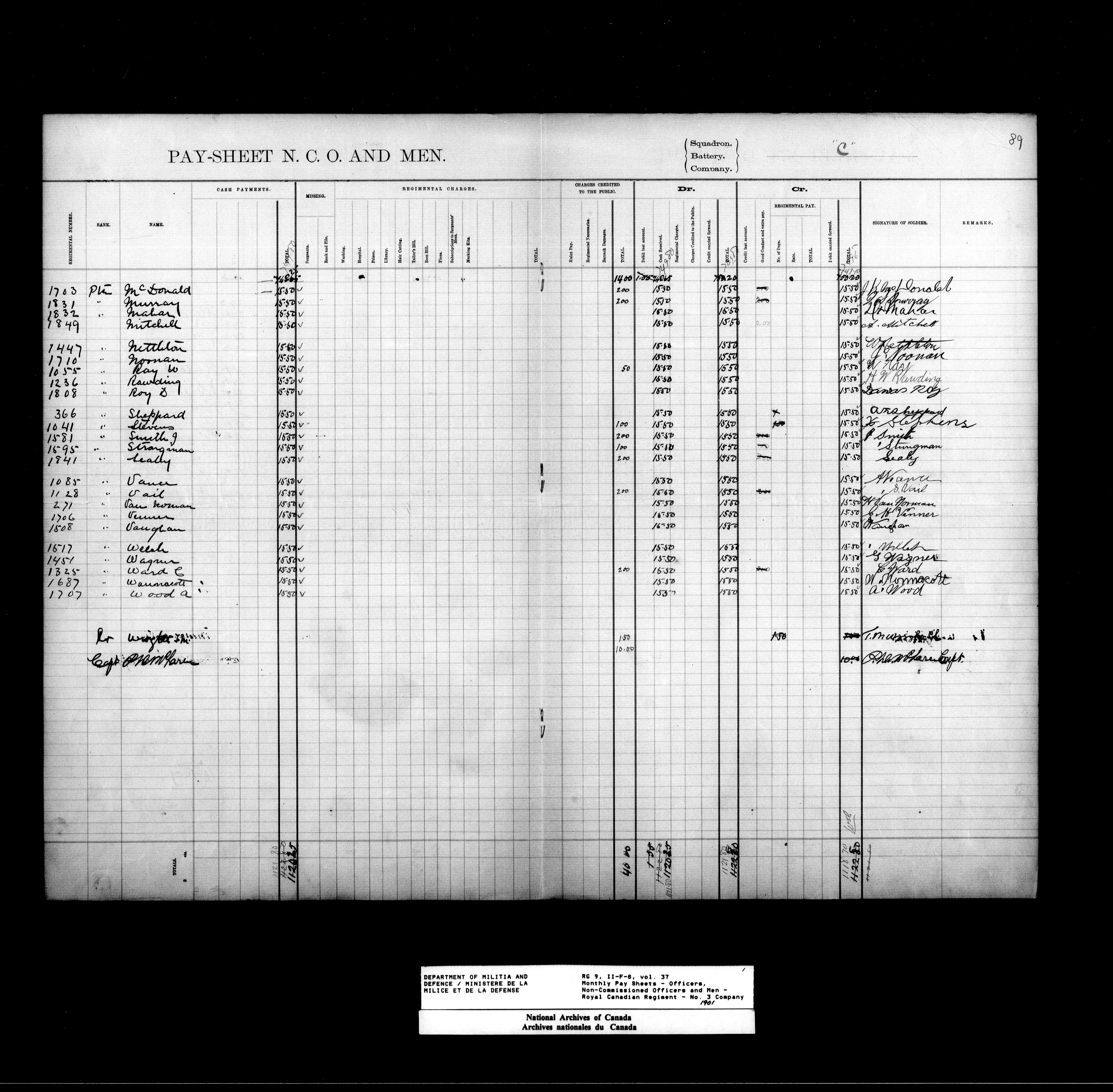 Nominal rolls and paylists for the Permanent Force (1871-1915) - 17450