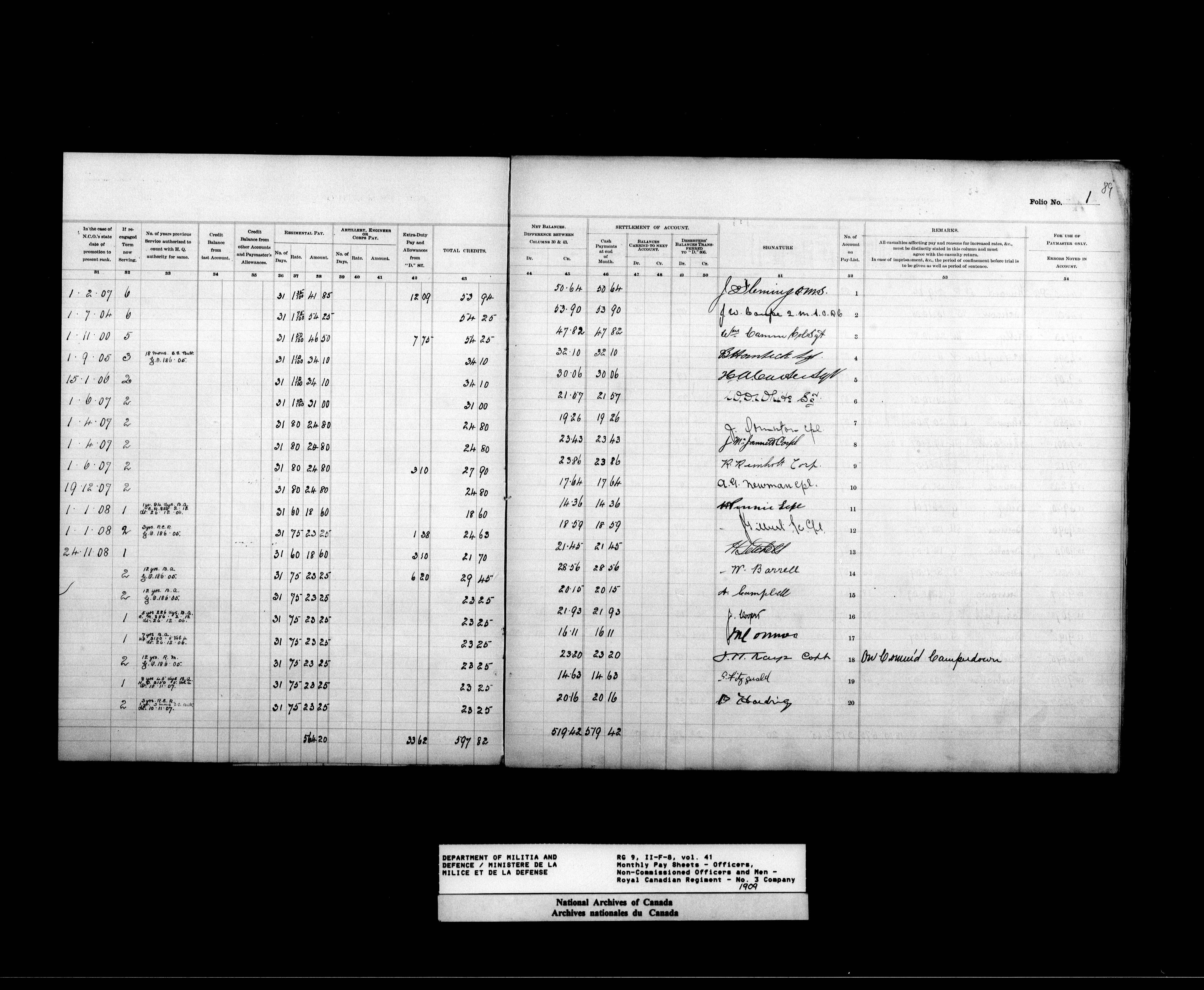 Nominal rolls and paylists for the Permanent Force (1871-1915) - 17451