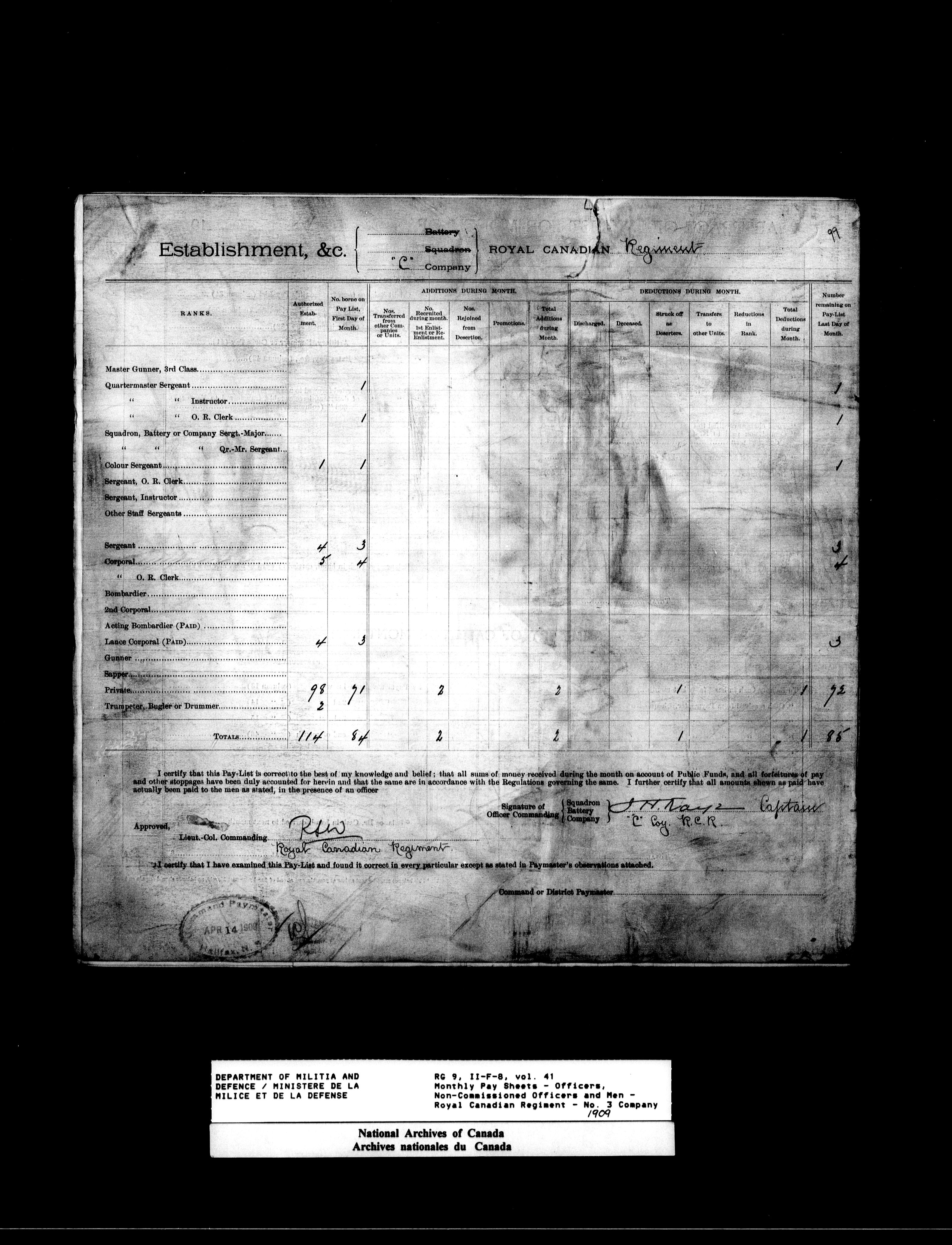 Nominal rolls and paylists for the Permanent Force (1871-1915) - 17451