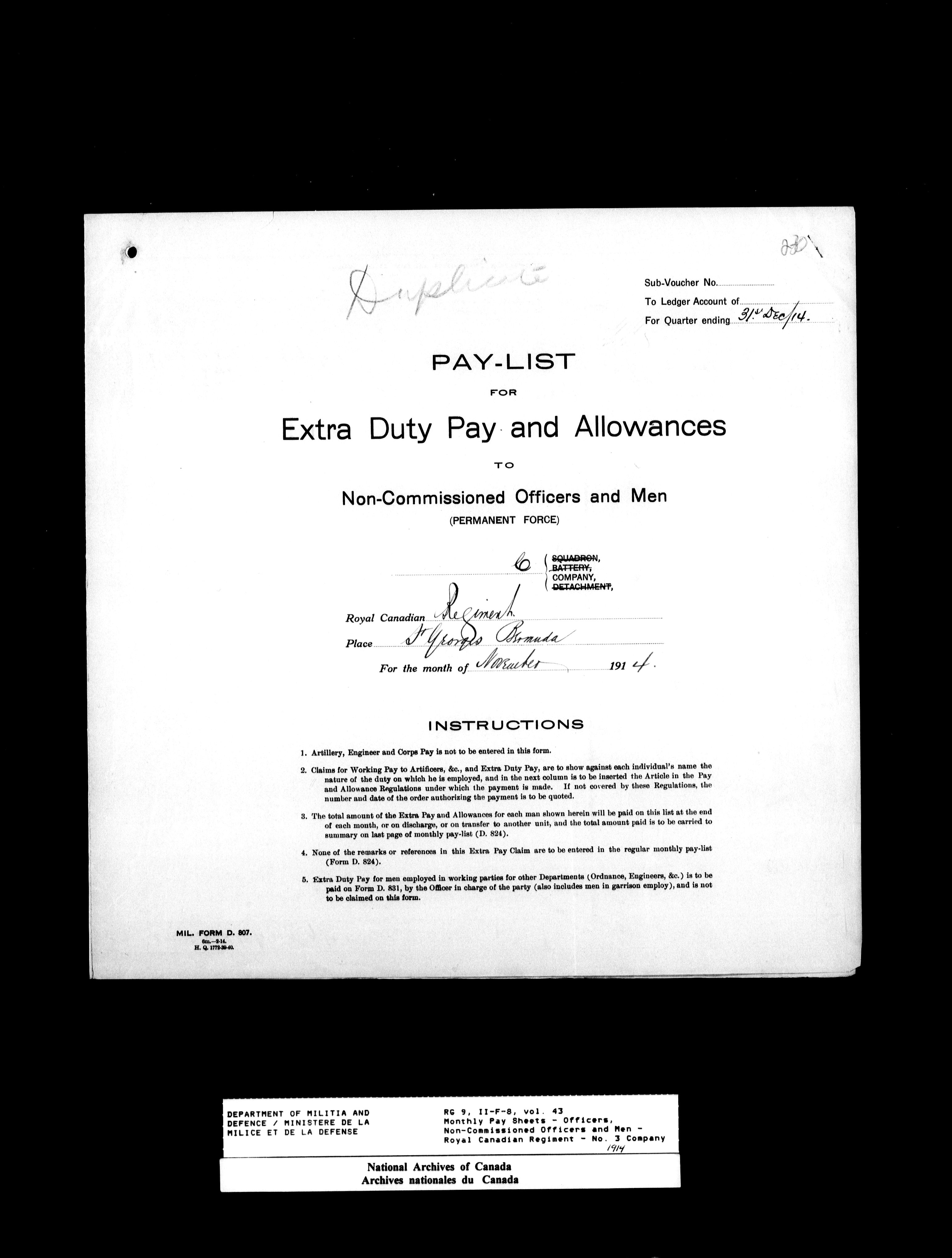 Nominal rolls and paylists for the Permanent Force (1871-1915) - 17453